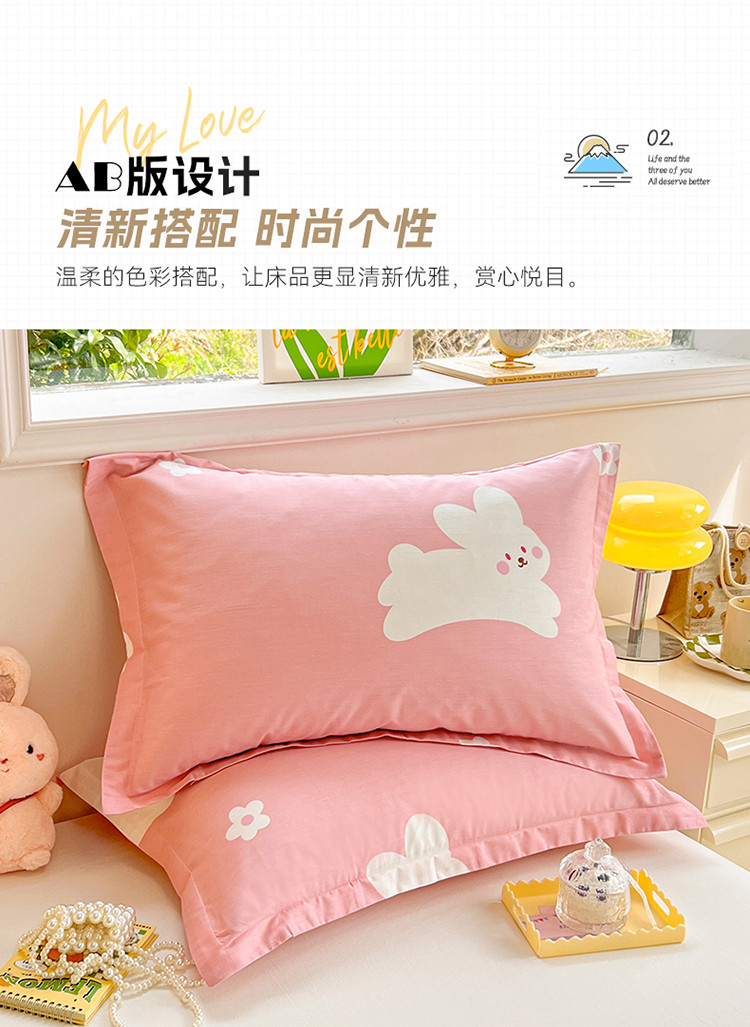 绵庭 2023新款全棉印花枕套 萌萌兔-粉