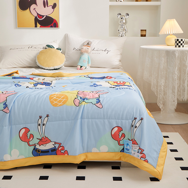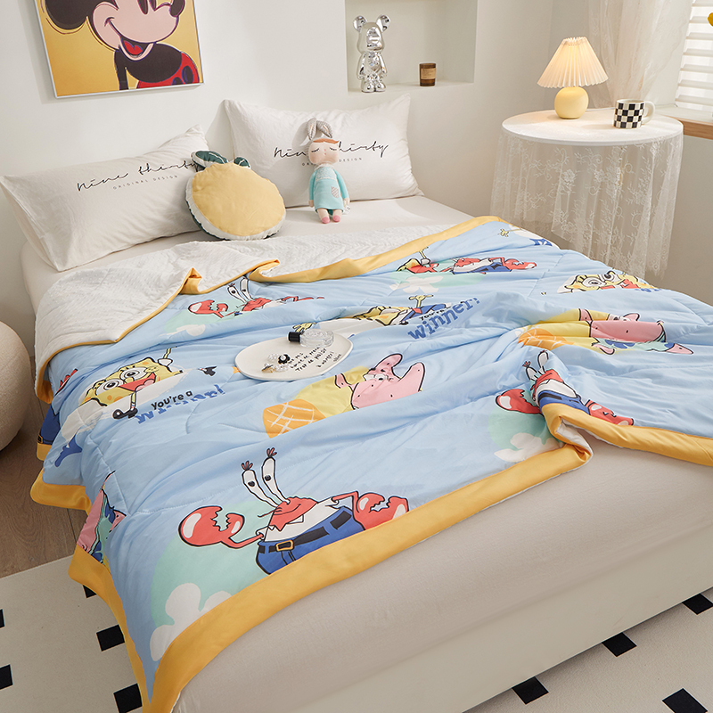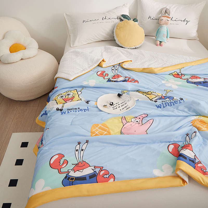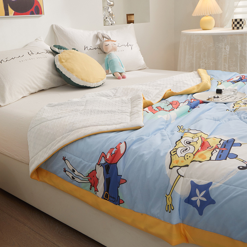 一米阳光 2023新款凉感丝豆豆款包边夏被 海绵宝宝