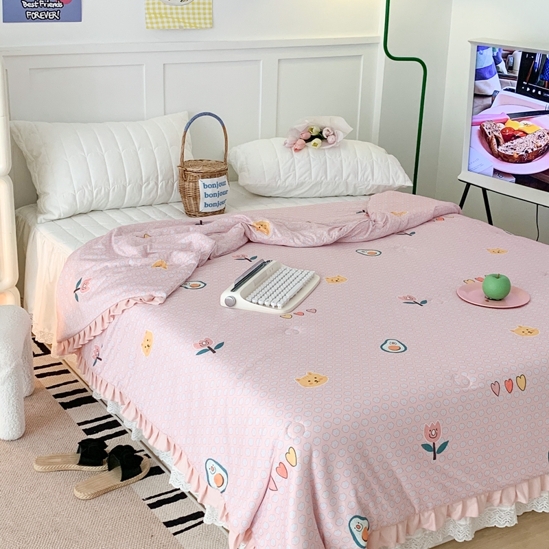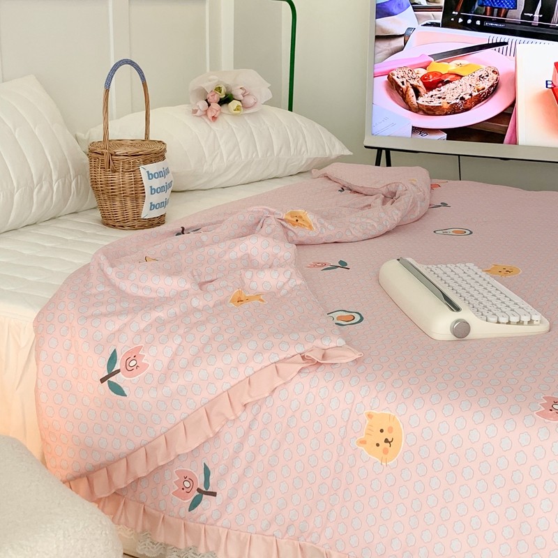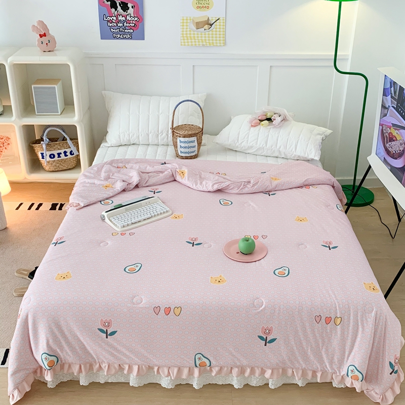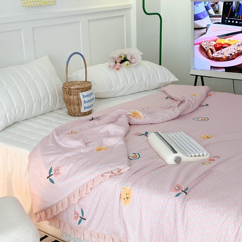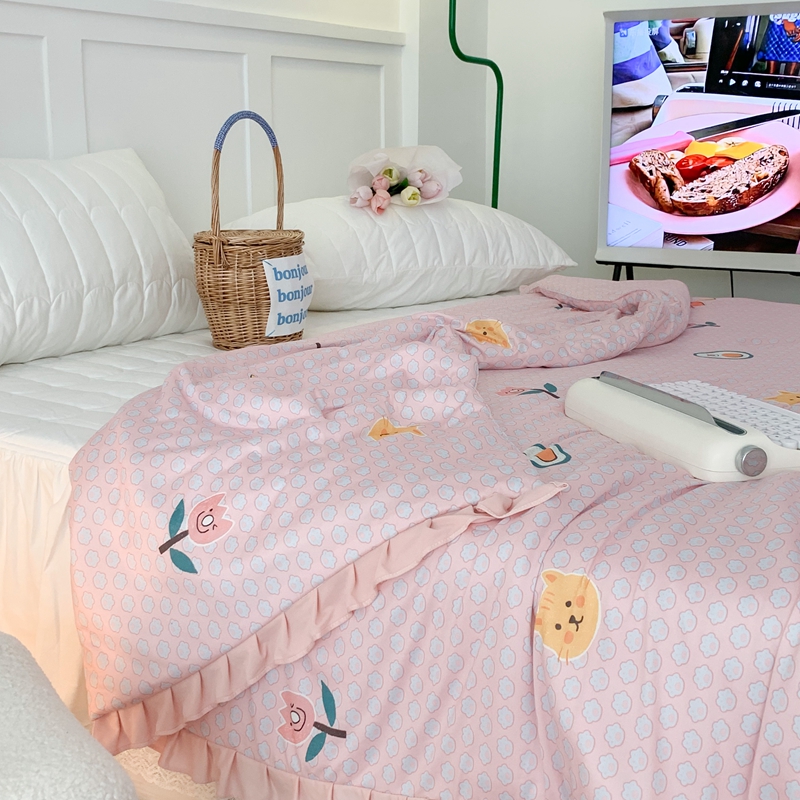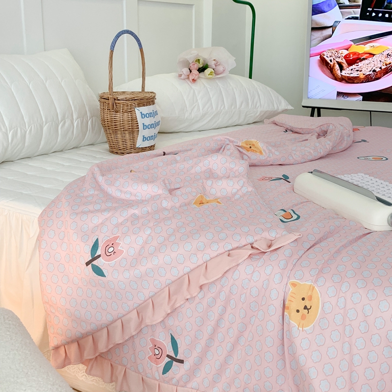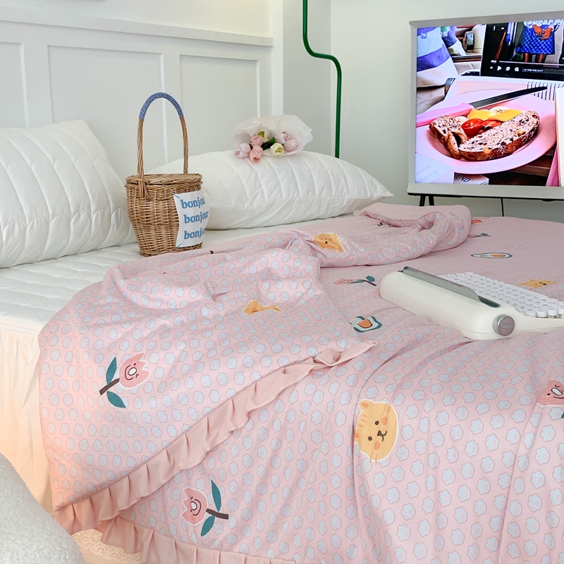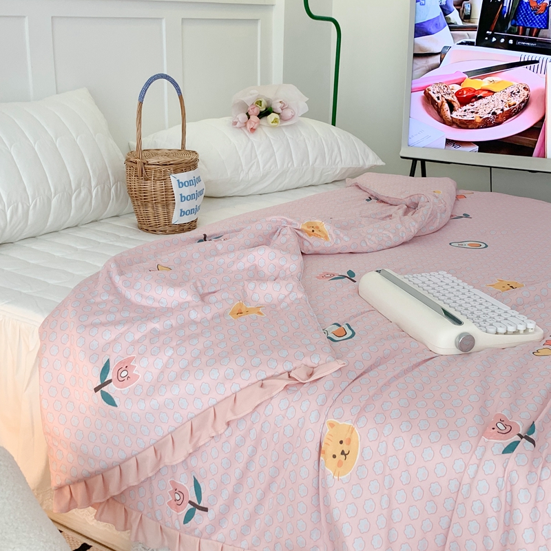 昔可家纺2023新款花边款云柔针织大豆夏被 脚印猫猫