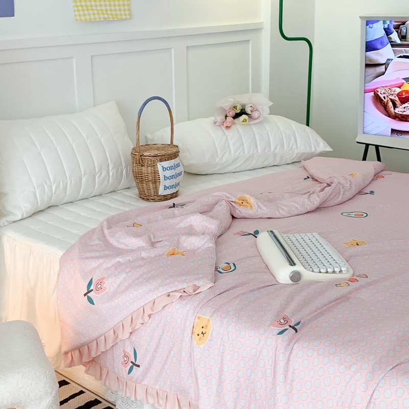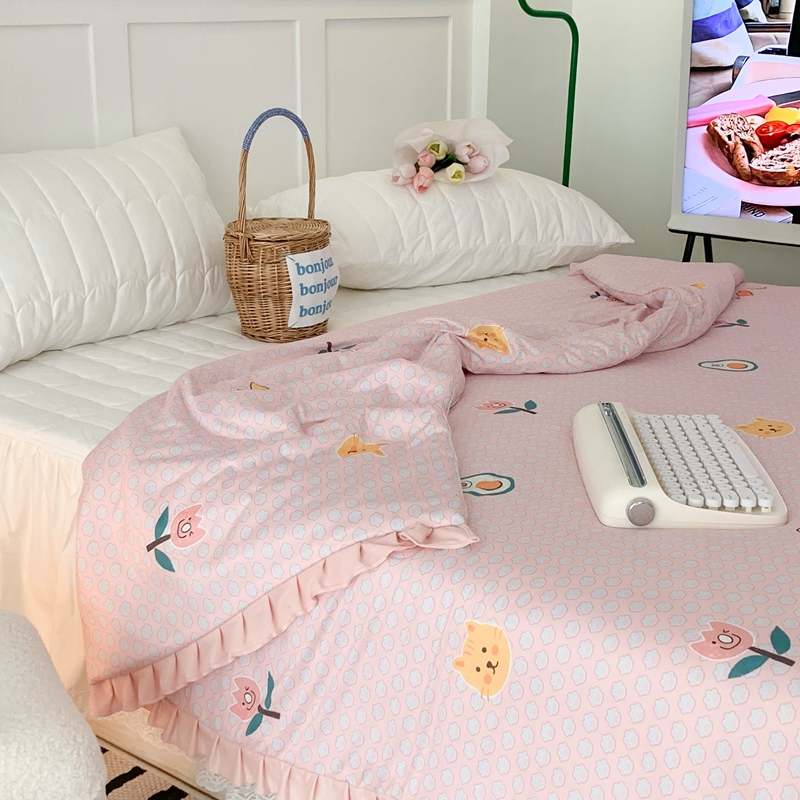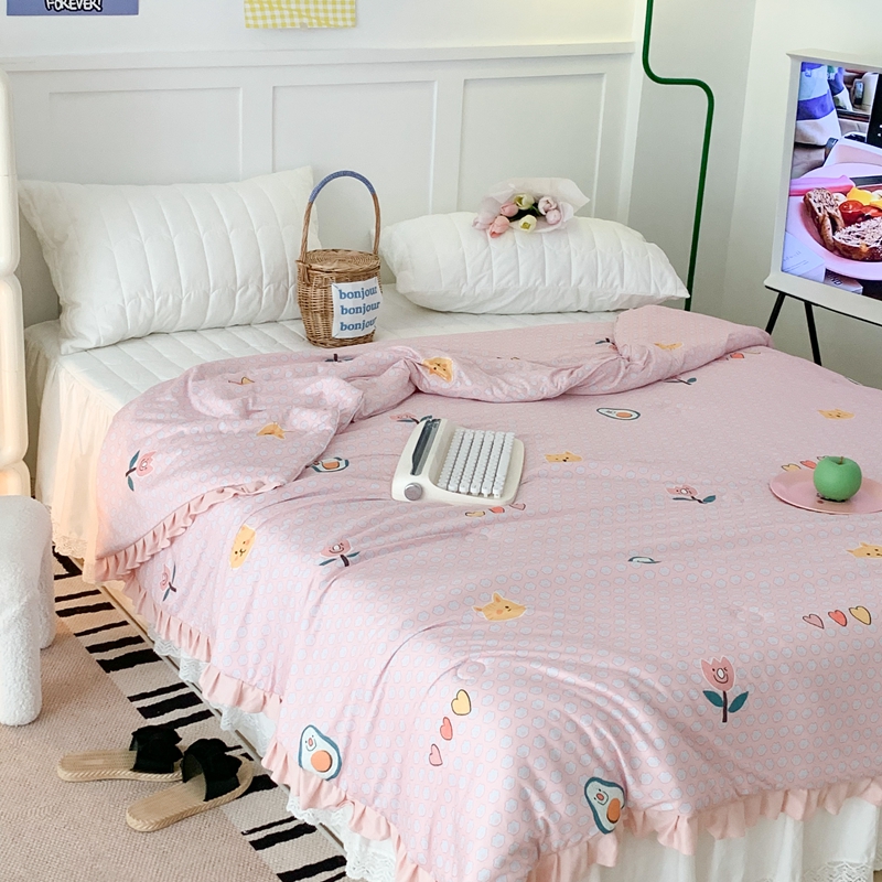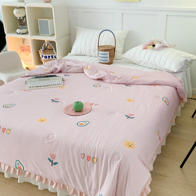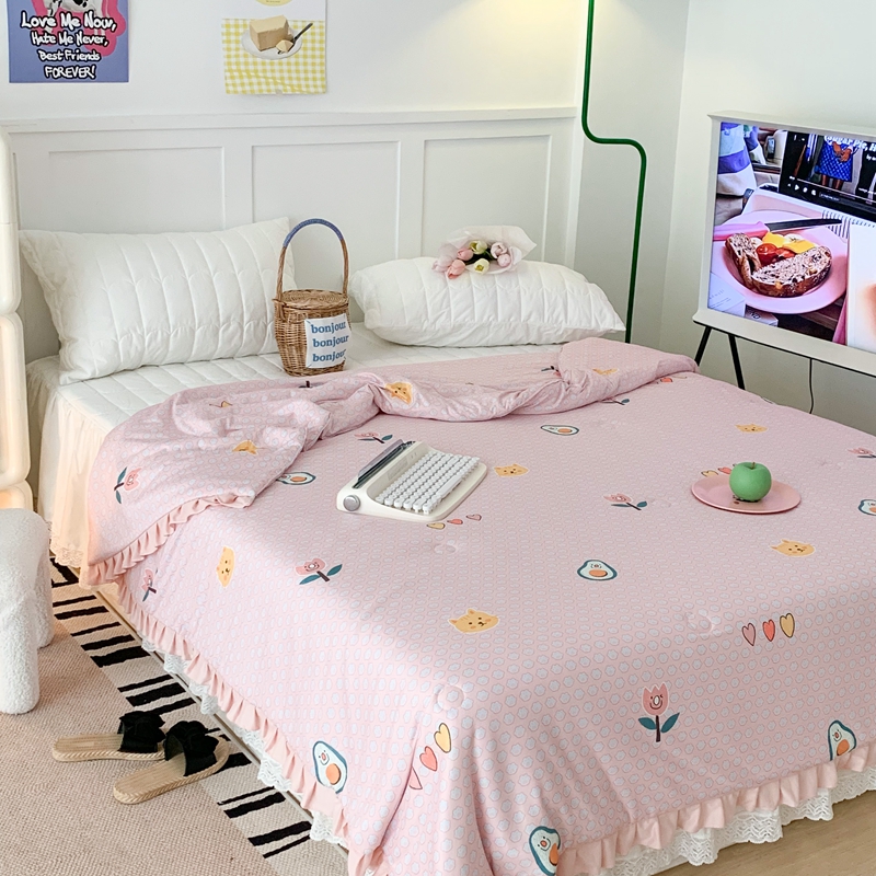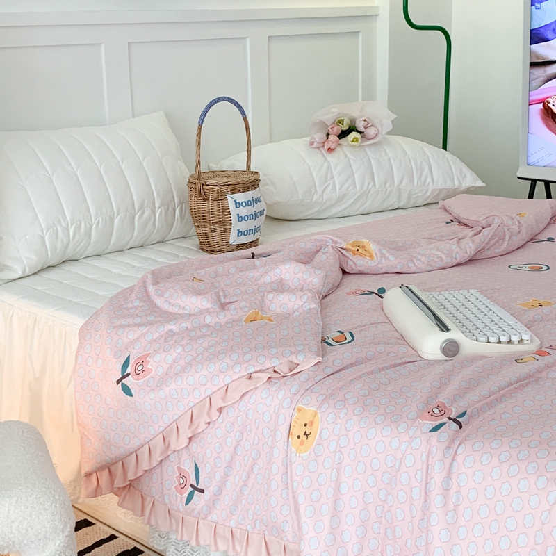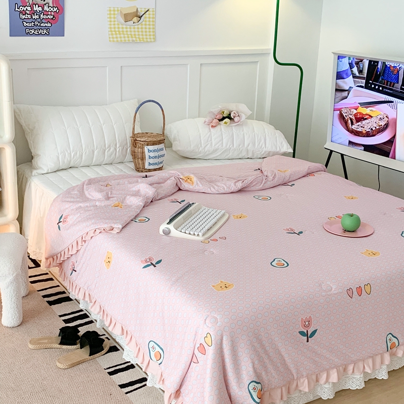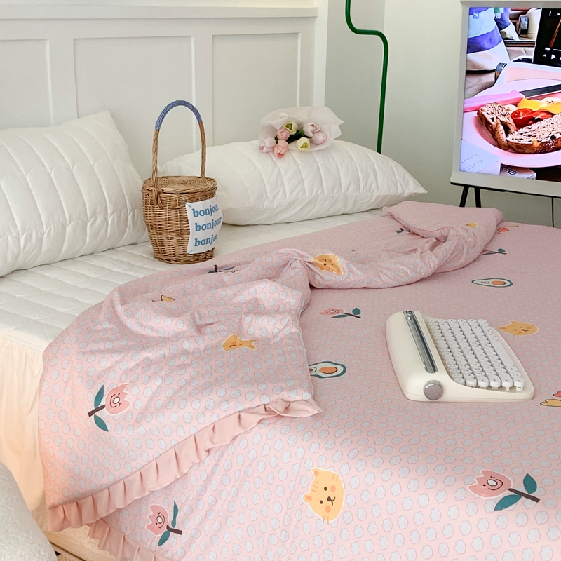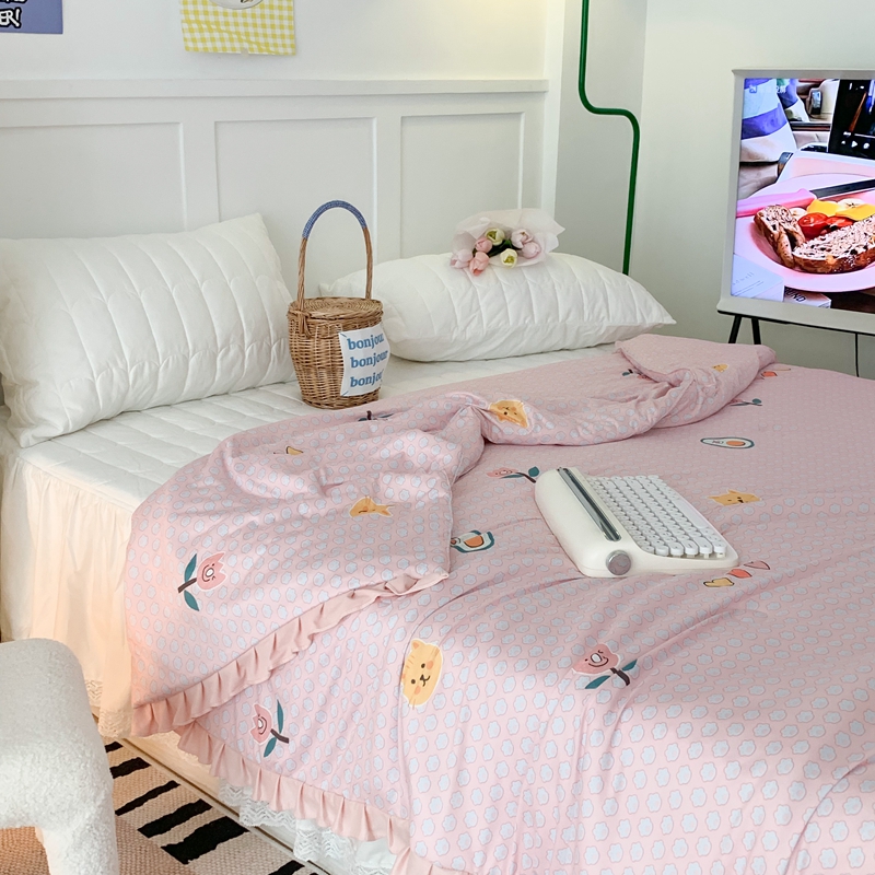 昔可家纺2023新款花边款云柔针织大豆夏被 脚印猫猫