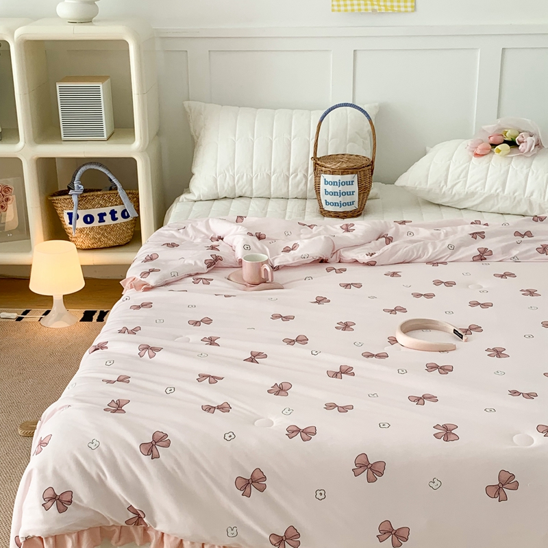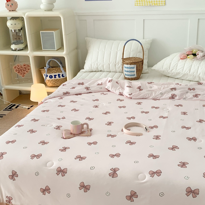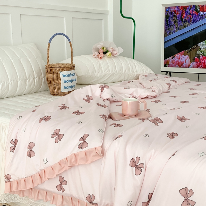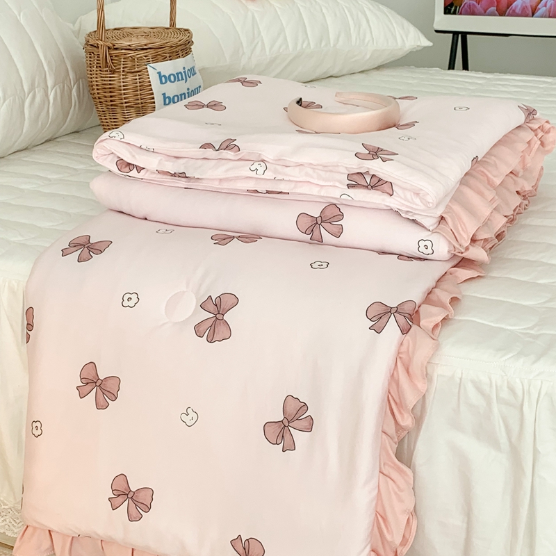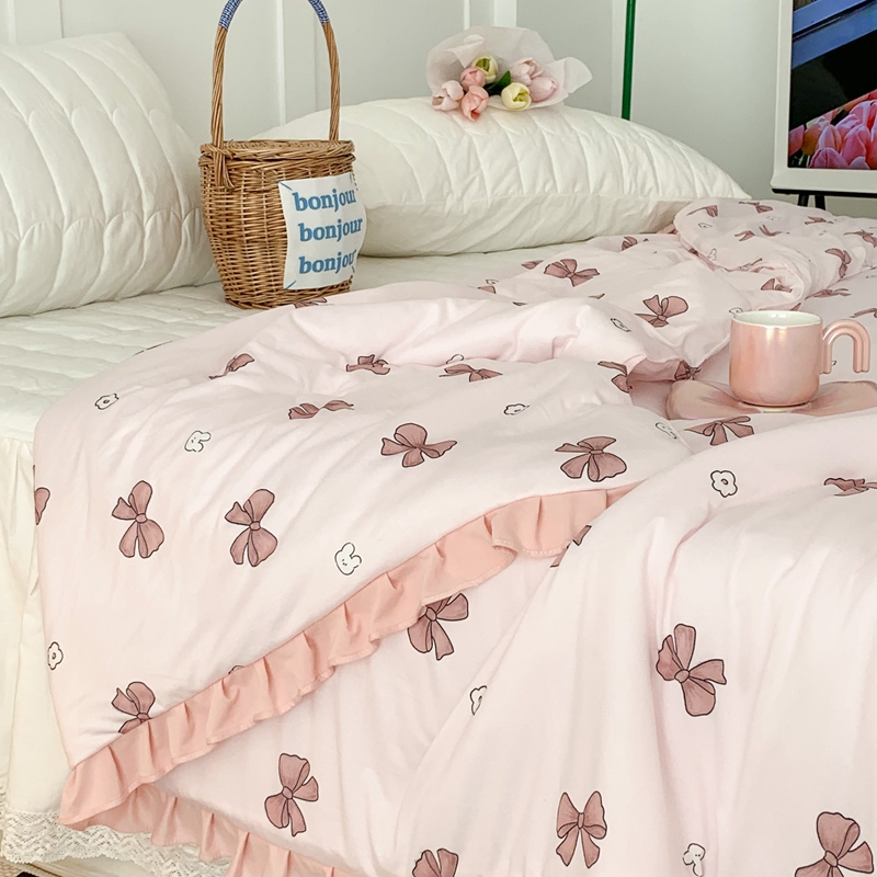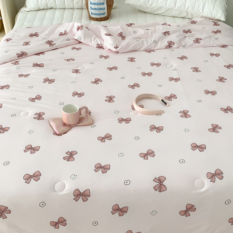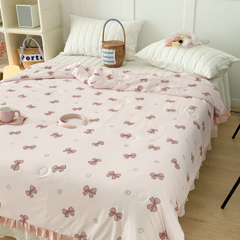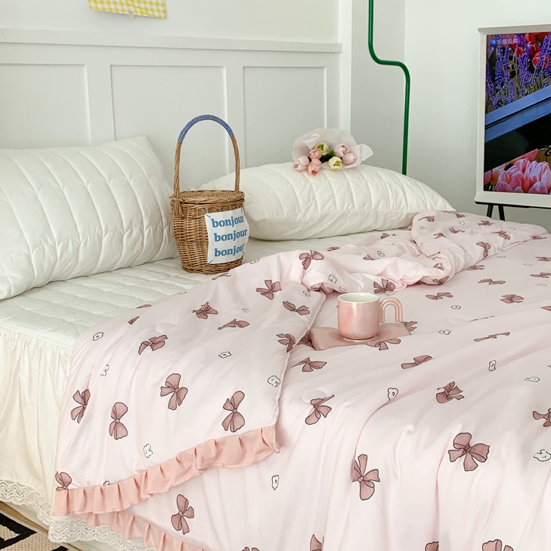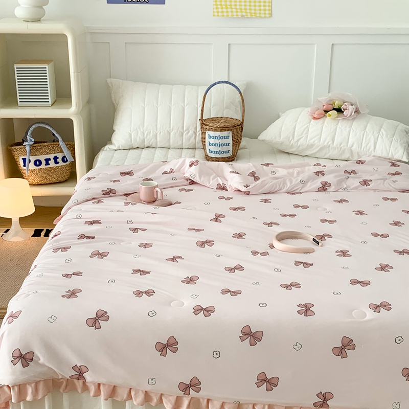 昔可家纺2023新款花边款云柔针织大豆夏被 小熊蝴蝶结粉