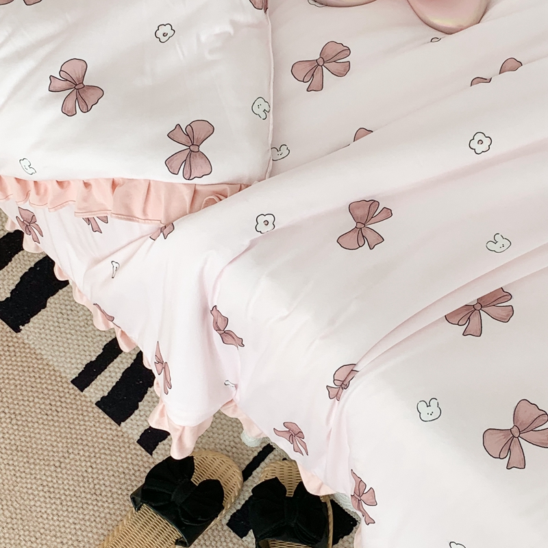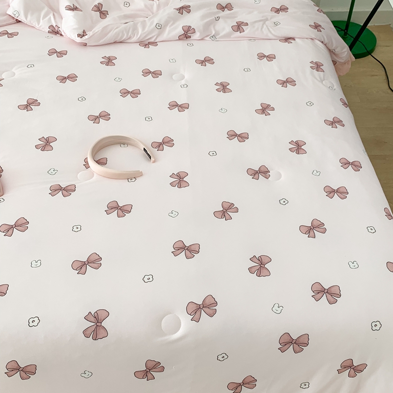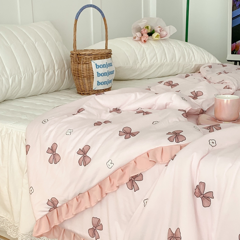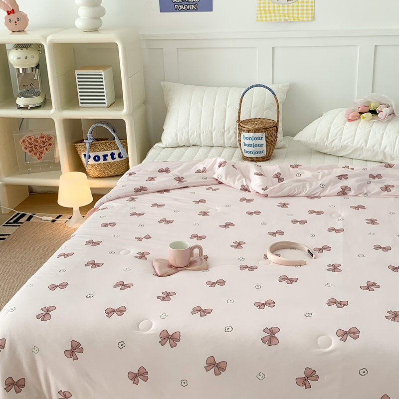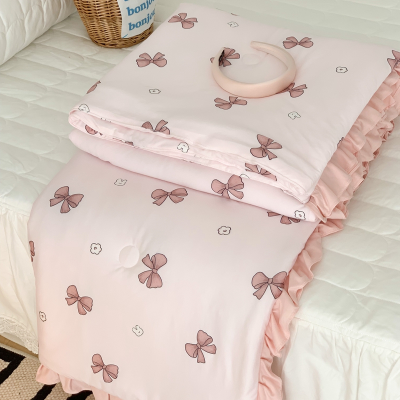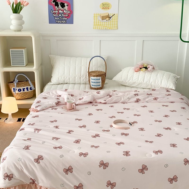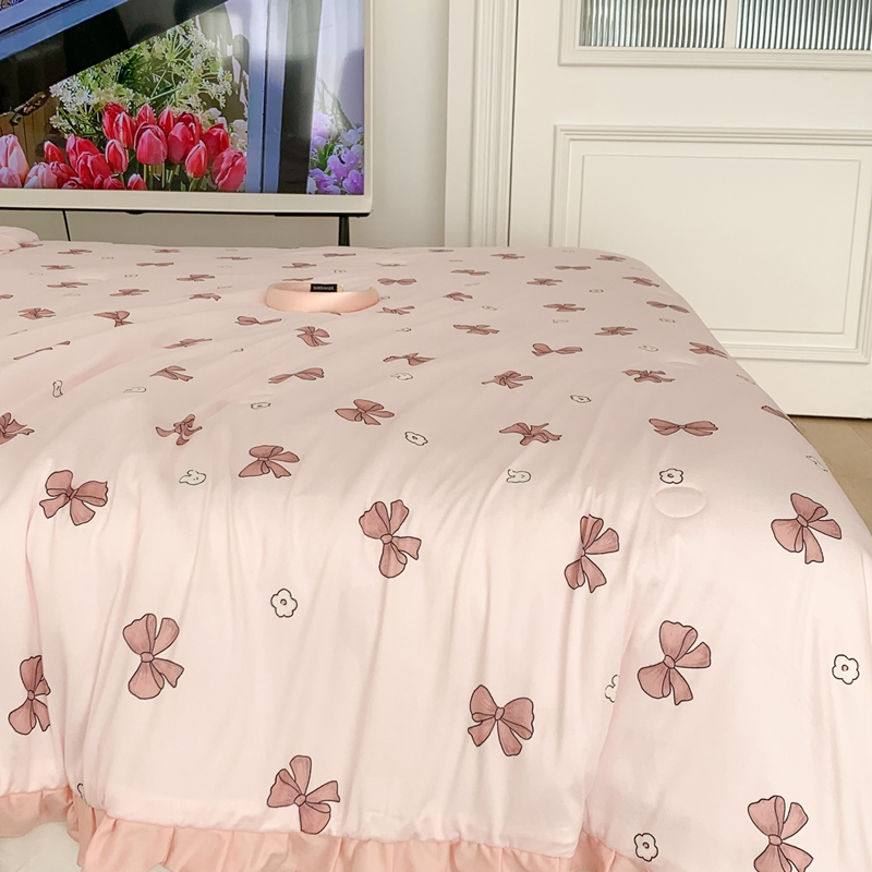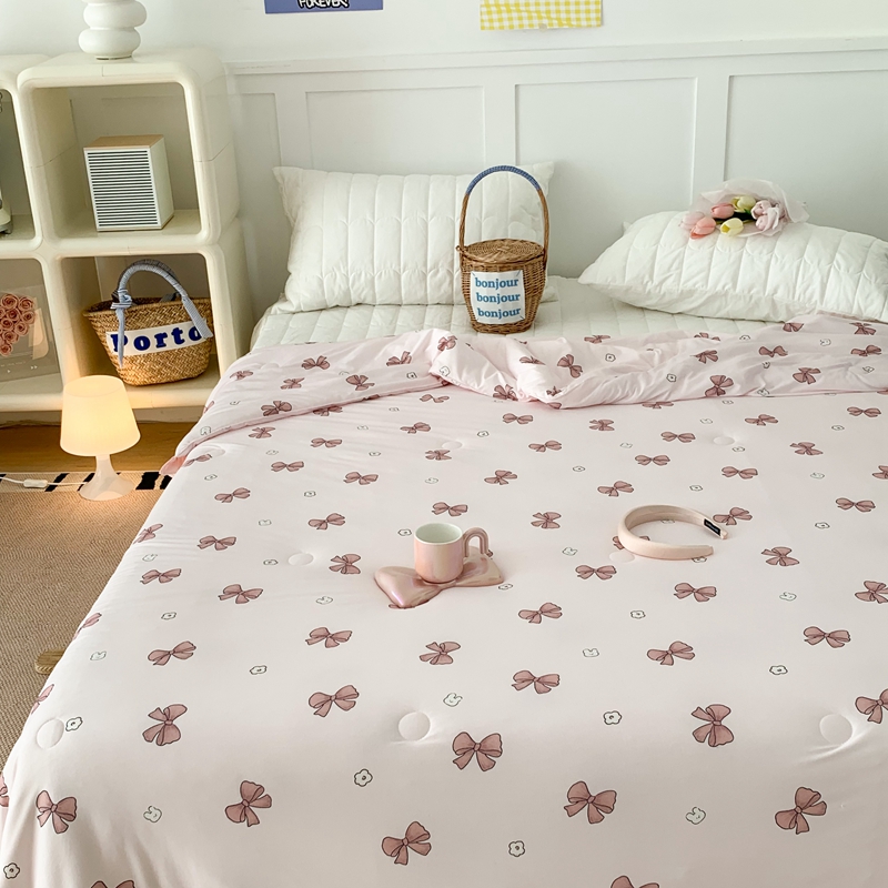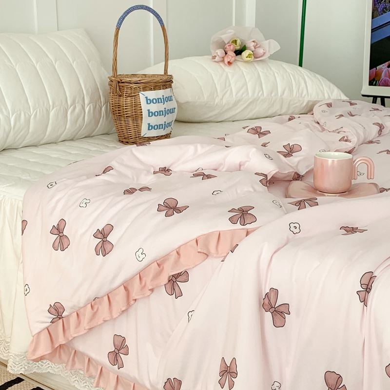 昔可家纺2023新款花边款云柔针织大豆夏被 小熊蝴蝶结粉