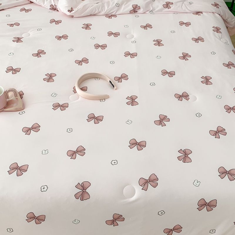 商品名称:昔可家纺2023新款花边款云柔针织大豆夏被 小熊蝴蝶结粉