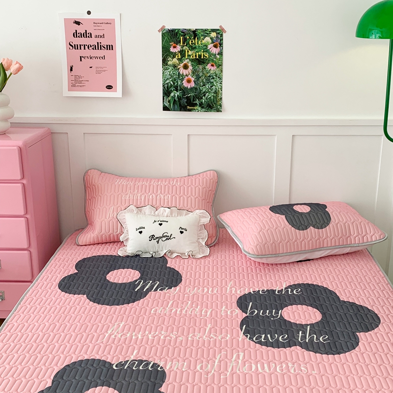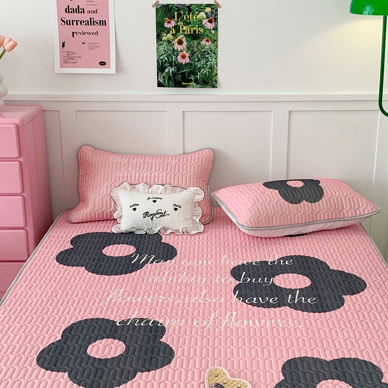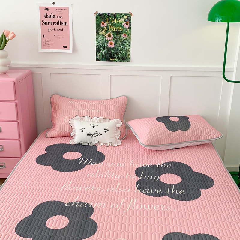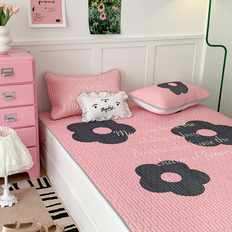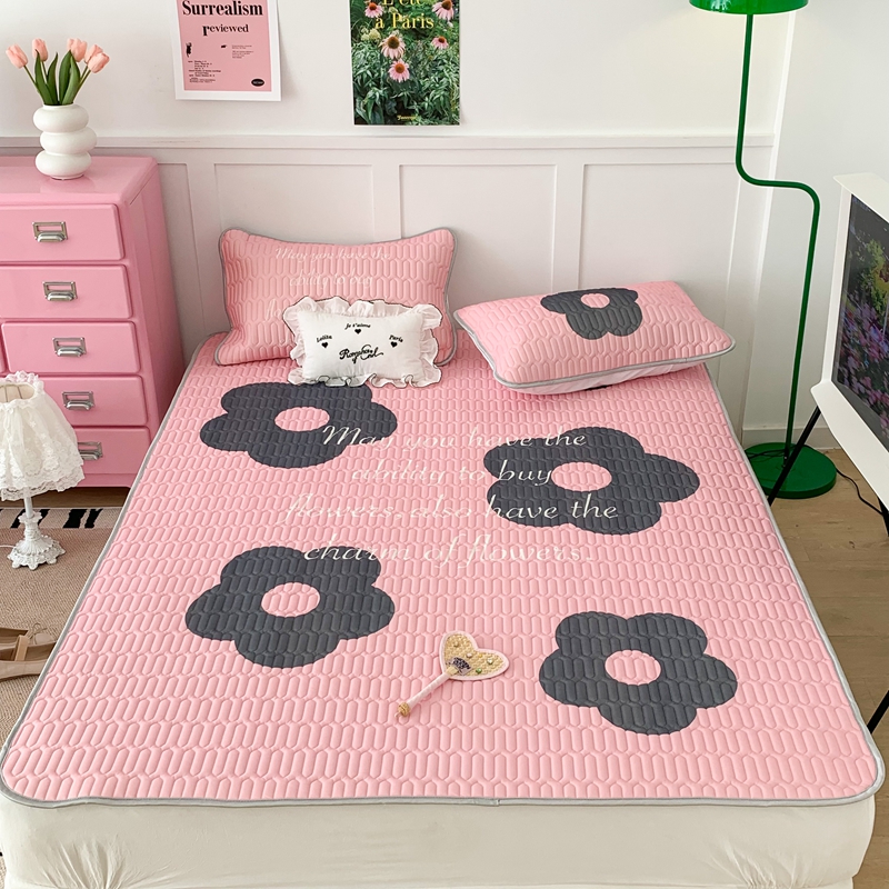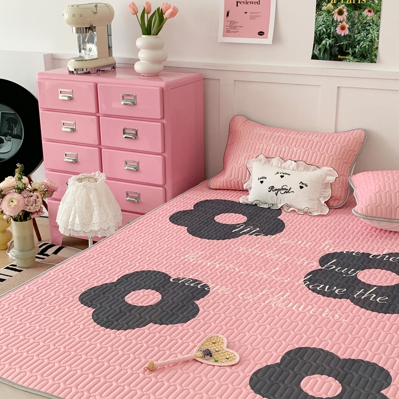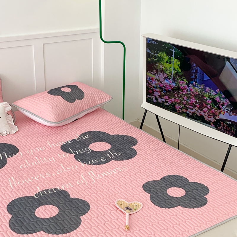 昔可家纺2023新款甜酷黑粉系列乳胶凉席 甜酷黑粉花花