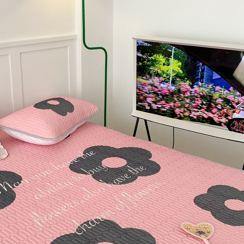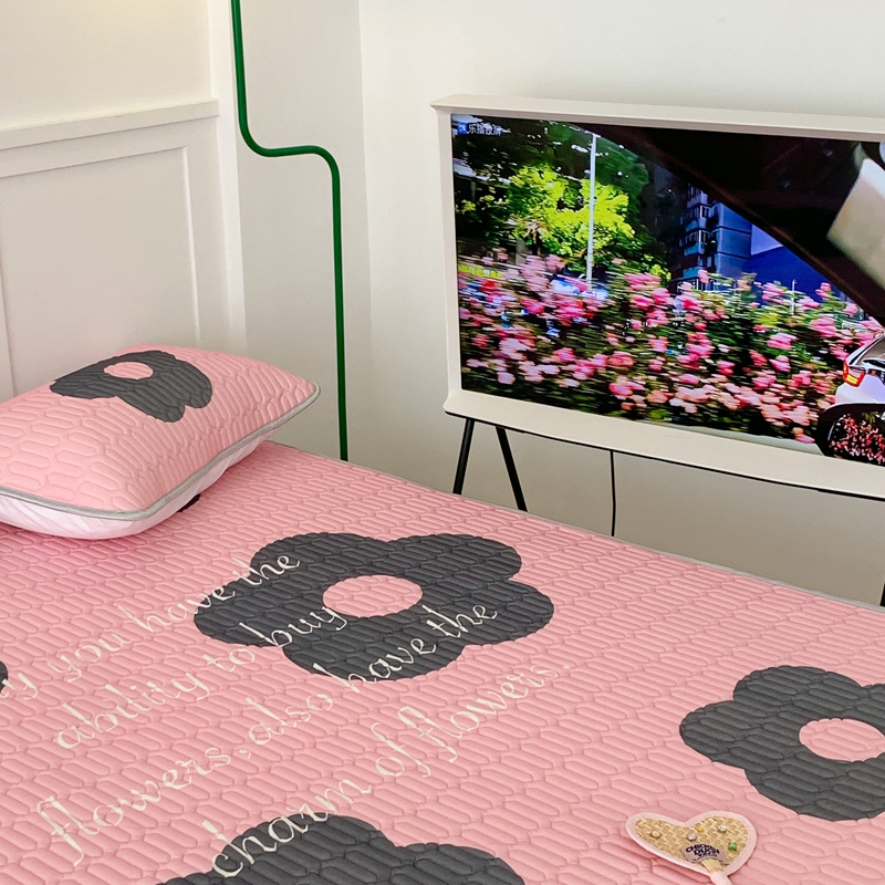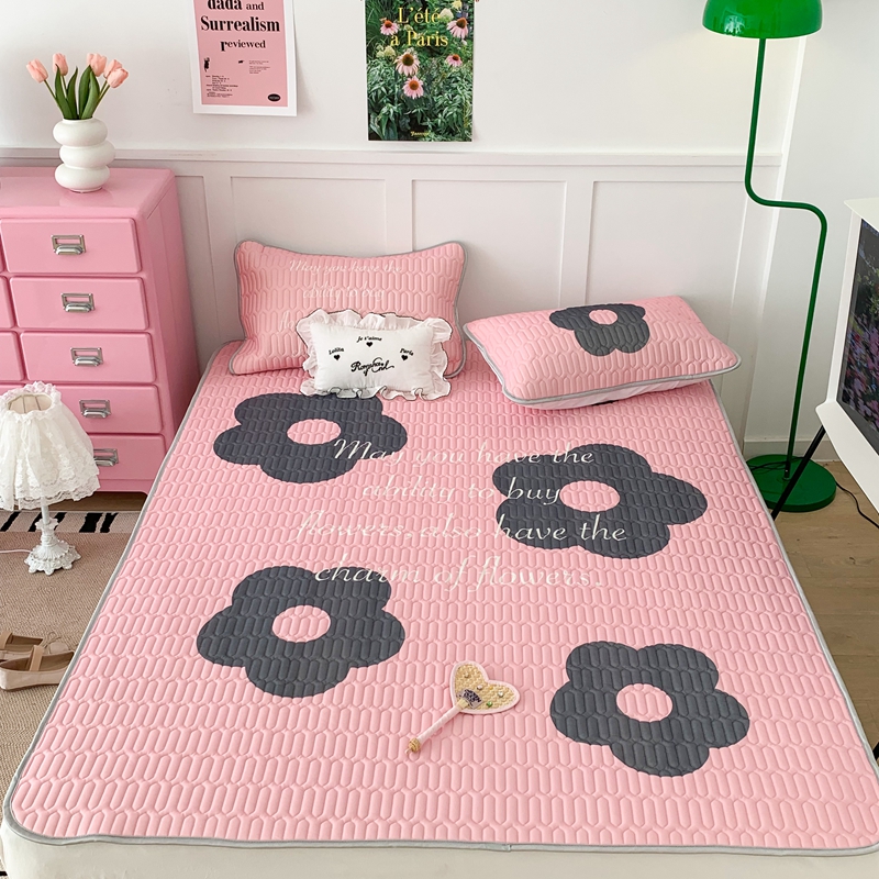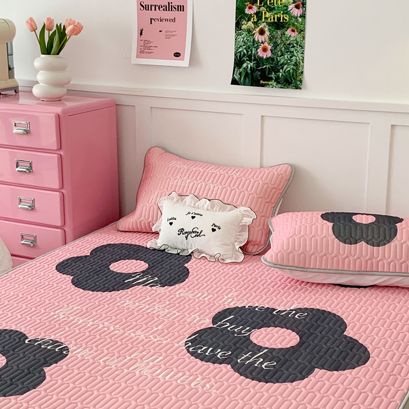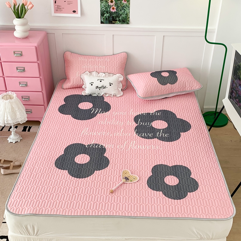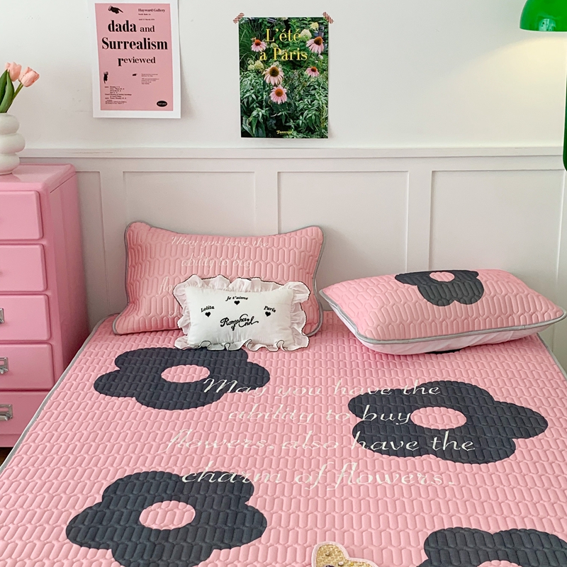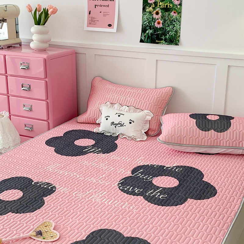 昔可家纺2023新款甜酷黑粉系列乳胶凉席 甜酷黑粉花花