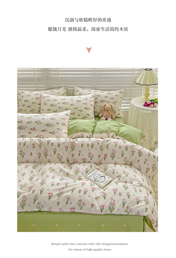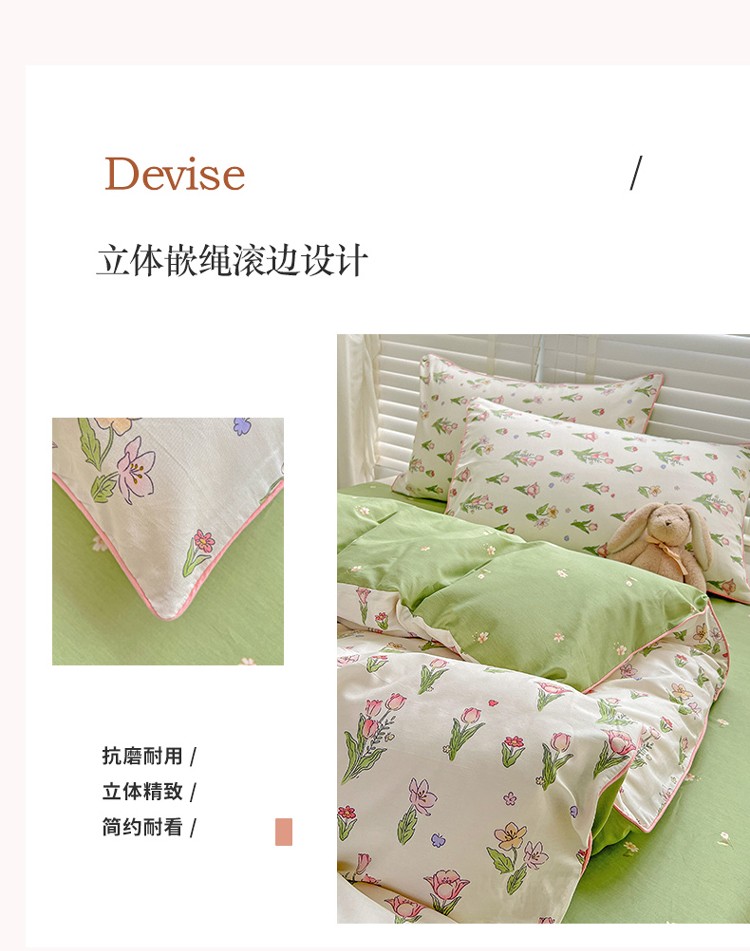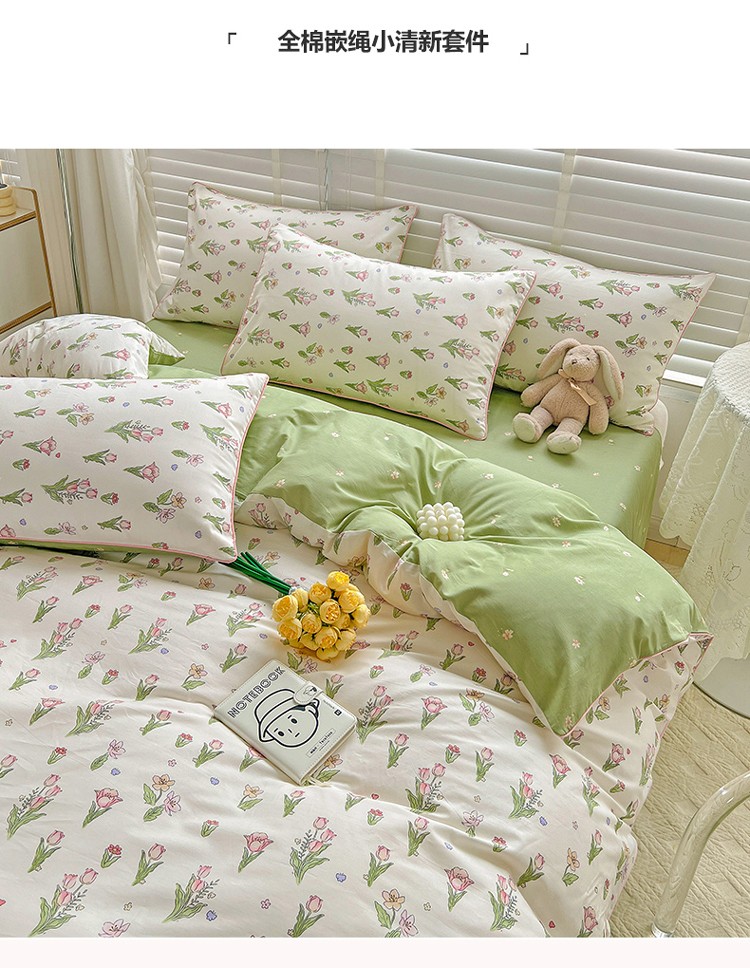 捌月 2023爆款全棉小清新嵌绳工艺四件套 四季