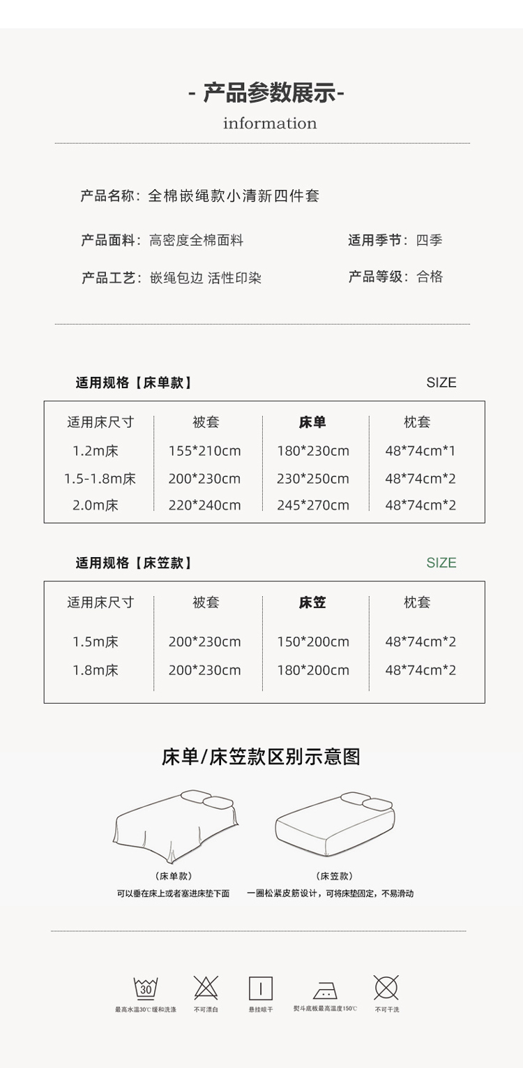 商品名称:捌月 2023爆款全棉小清新嵌绳工艺四件套 四季