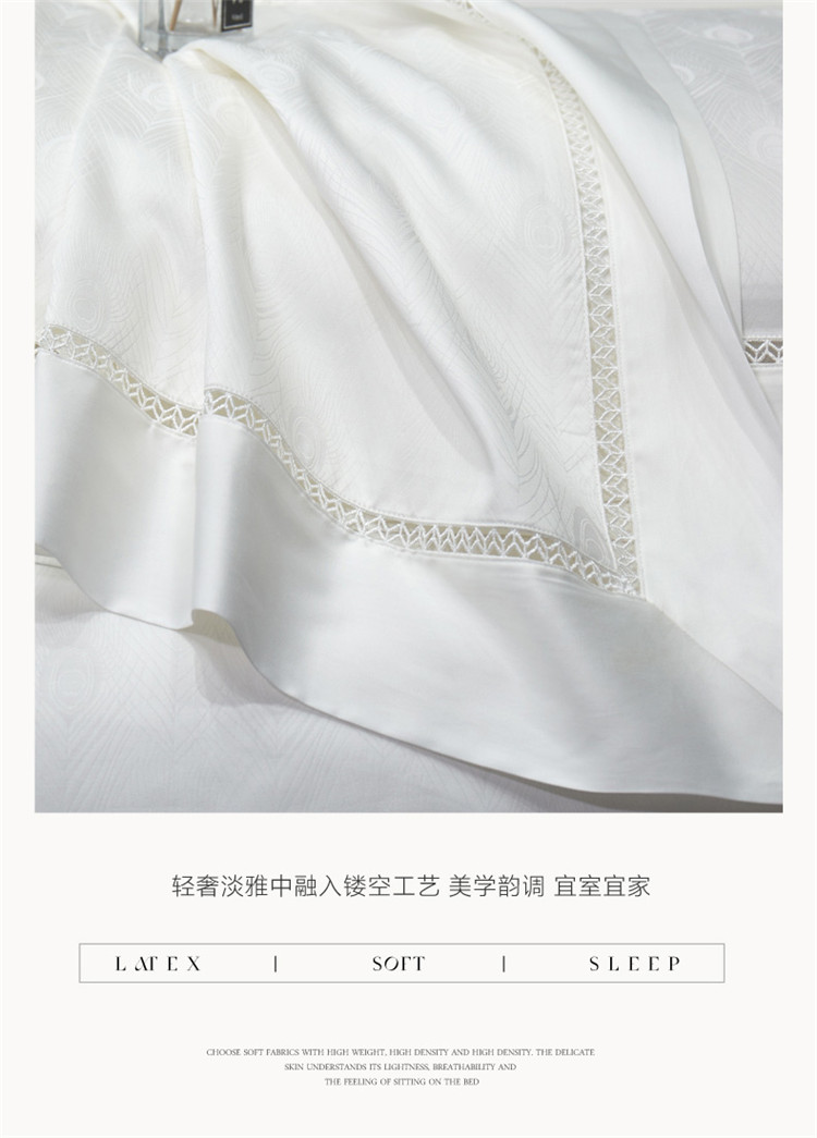 商品名称:嘉恋 2023新款100支全棉提花镂空四件套送包装 羽叶白
