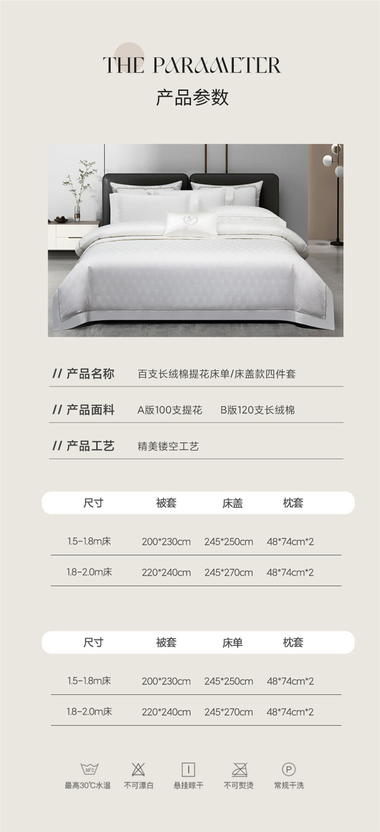 (总)嘉恋 2023新款100支全棉提花镂空四件套送包装,薄暮金,羽叶白,斑马纹,罗勒灰,西柚粉