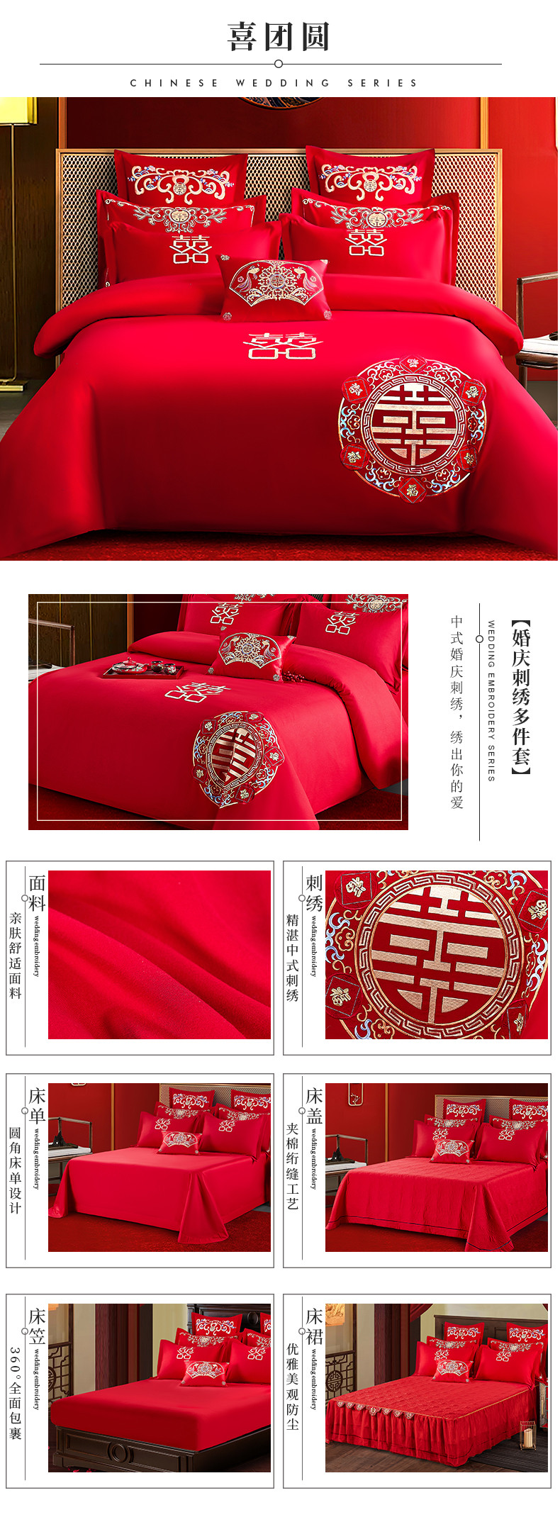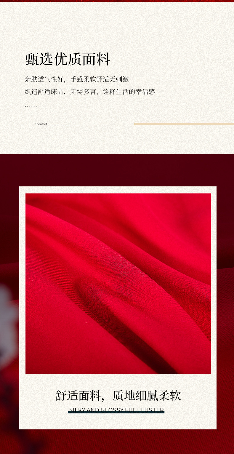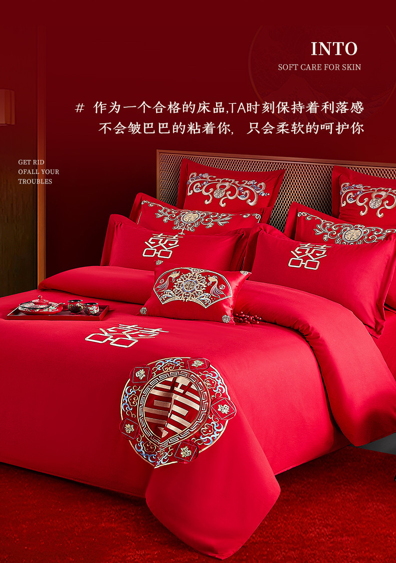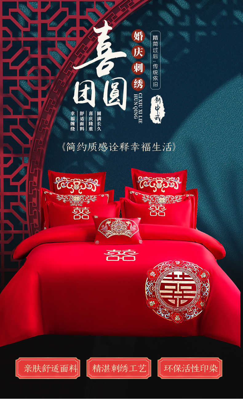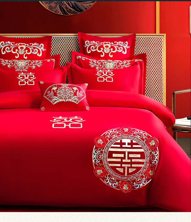 当前位置: 91家纺网 > 商品网购 > 床品套件 > 四件套 > 全棉普通四件套 > 2025新款亲肤棉绣花刺绣婚庆四件套 喜团圆