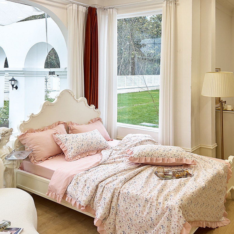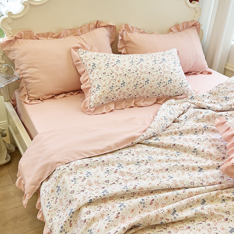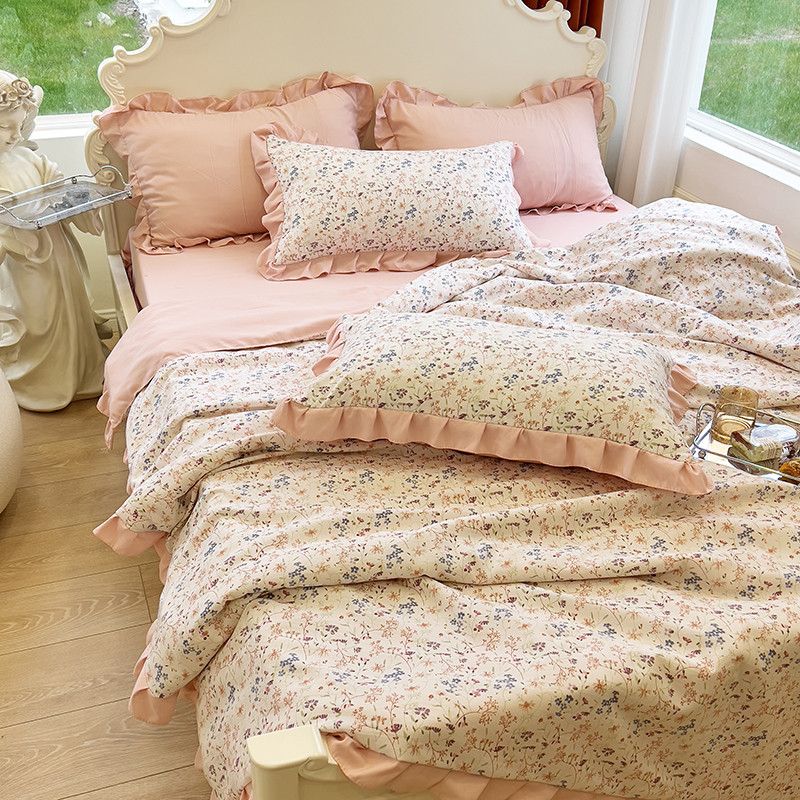 (总)梦莱斯 2025新款田园碎花纯棉花边四件套-床盖款,采薇,花精灵,花开半夏,莱茵,恋爱季,绿叶仙踪,糜花似锦,糜花熙悦,秘境花园