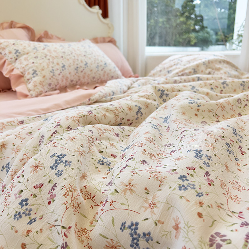 (总)梦莱斯 2025新款云感木棉皱皱双层纱全棉花边四件套,百福蓝,春风里,薄荷微凉,春晓,豆蔻,蝴蝶梦,可颂,兰黛,山野栀子,素颜,太妃糖,心动,遇见,芝士奶酪,紫爱心,紫苏,花园兔,蜡笔画,小黑兔,白茶-绿,初恋,莱茵河畔,桃花诺