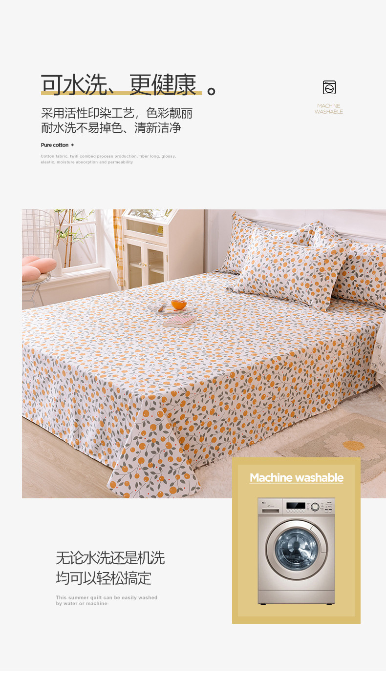 多品家纺 2023新款12868全棉单床单 甜蜜橘