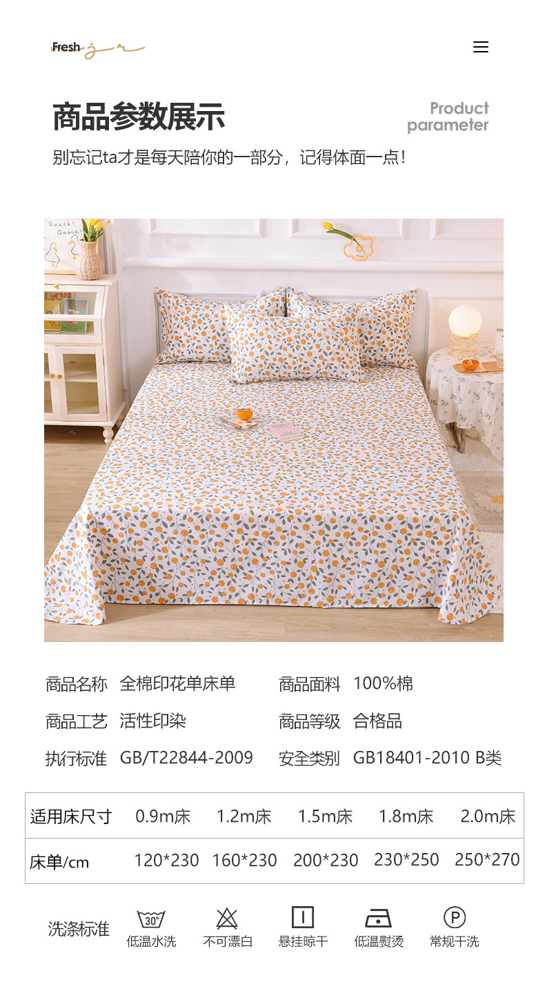 商品名称:多品家纺 2023新款12868全棉单床单 甜蜜橘