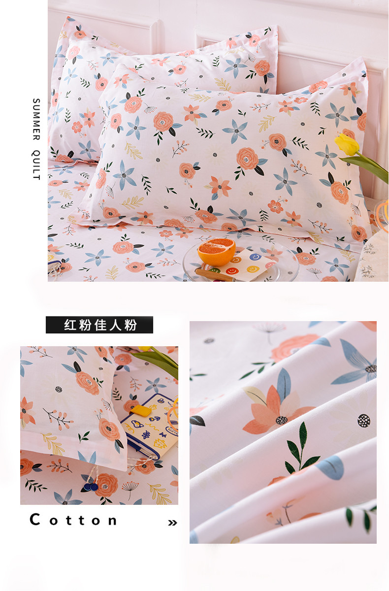 多品家纺 2023新款12868全棉双针单枕套 红粉佳人粉