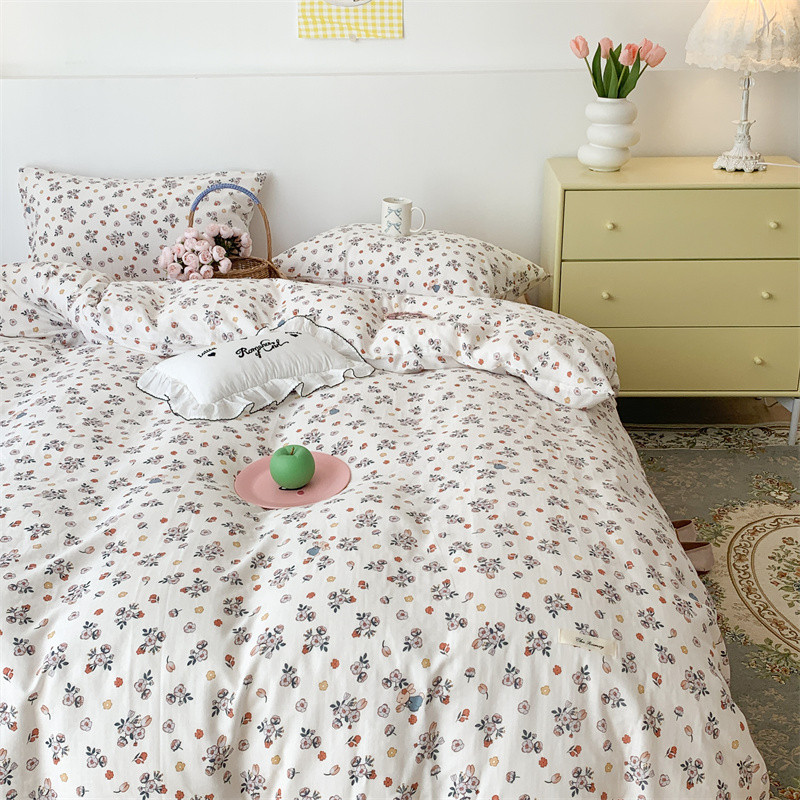 商品名称:昔可家纺 2023新款普通款全棉有氧双层纱四件套 珍妮兔兔花