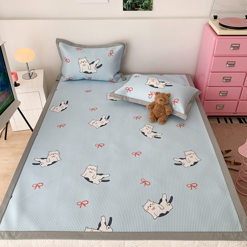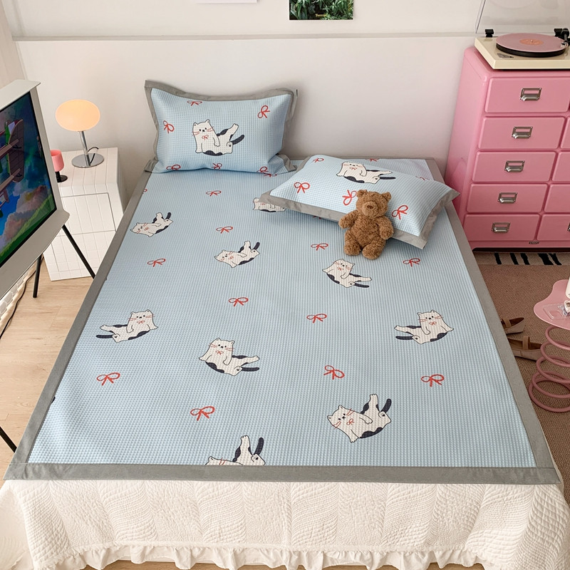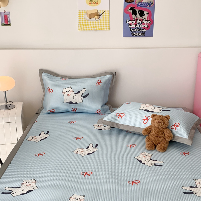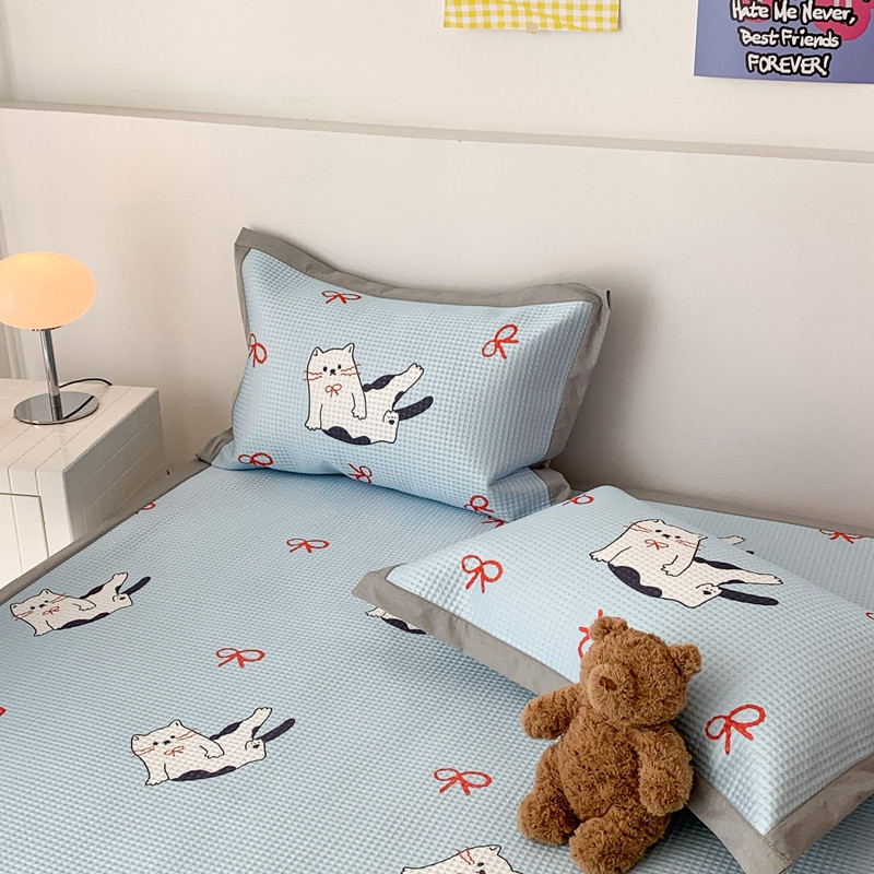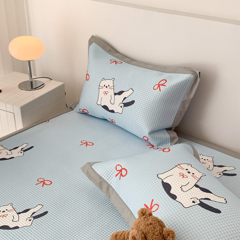 昔可家纺 2023新款高克重加厚华夫格凉感软席 蓝底猫咪