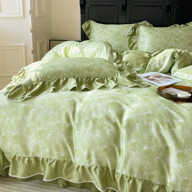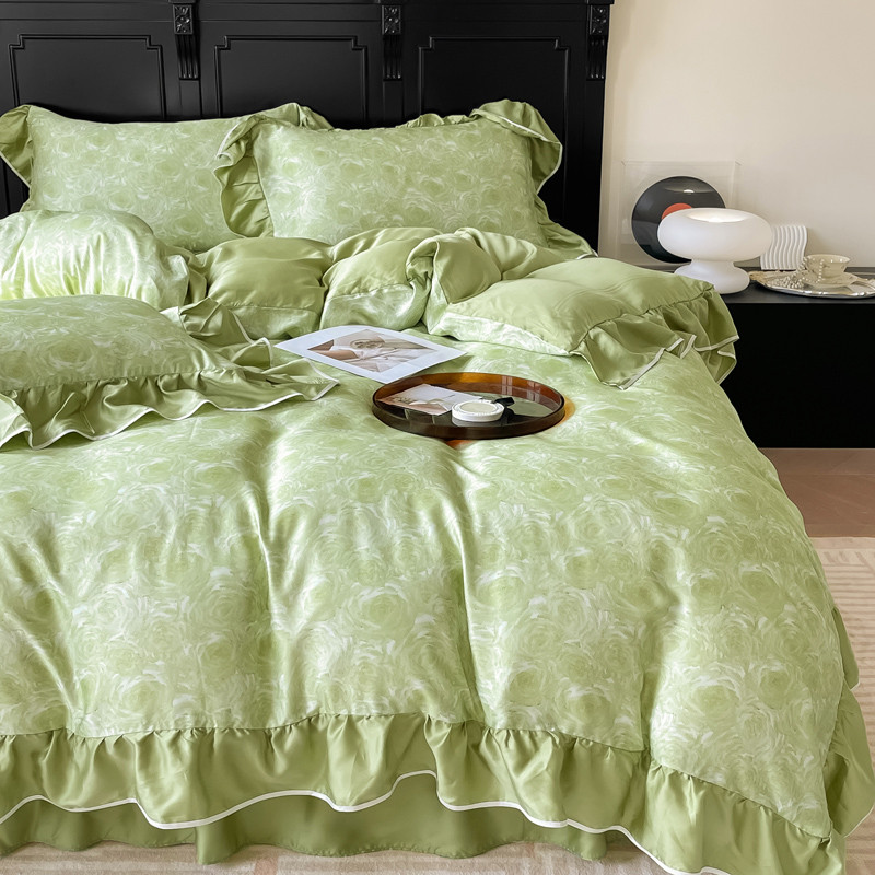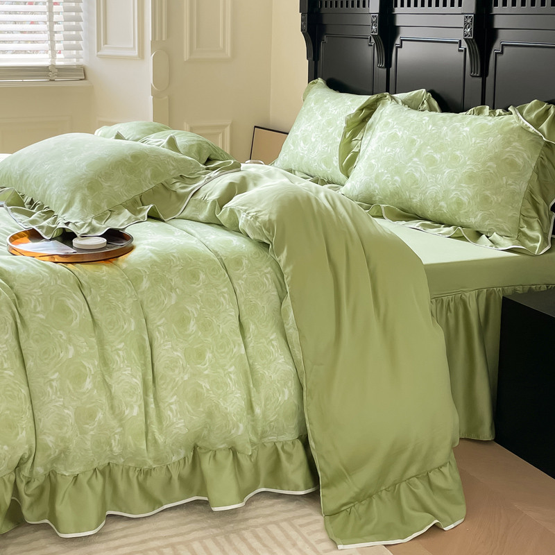 商品名称:若未家居 2032新款50S兰精天丝法式床裙款四件套-风格二 夏谧-牛油果绿