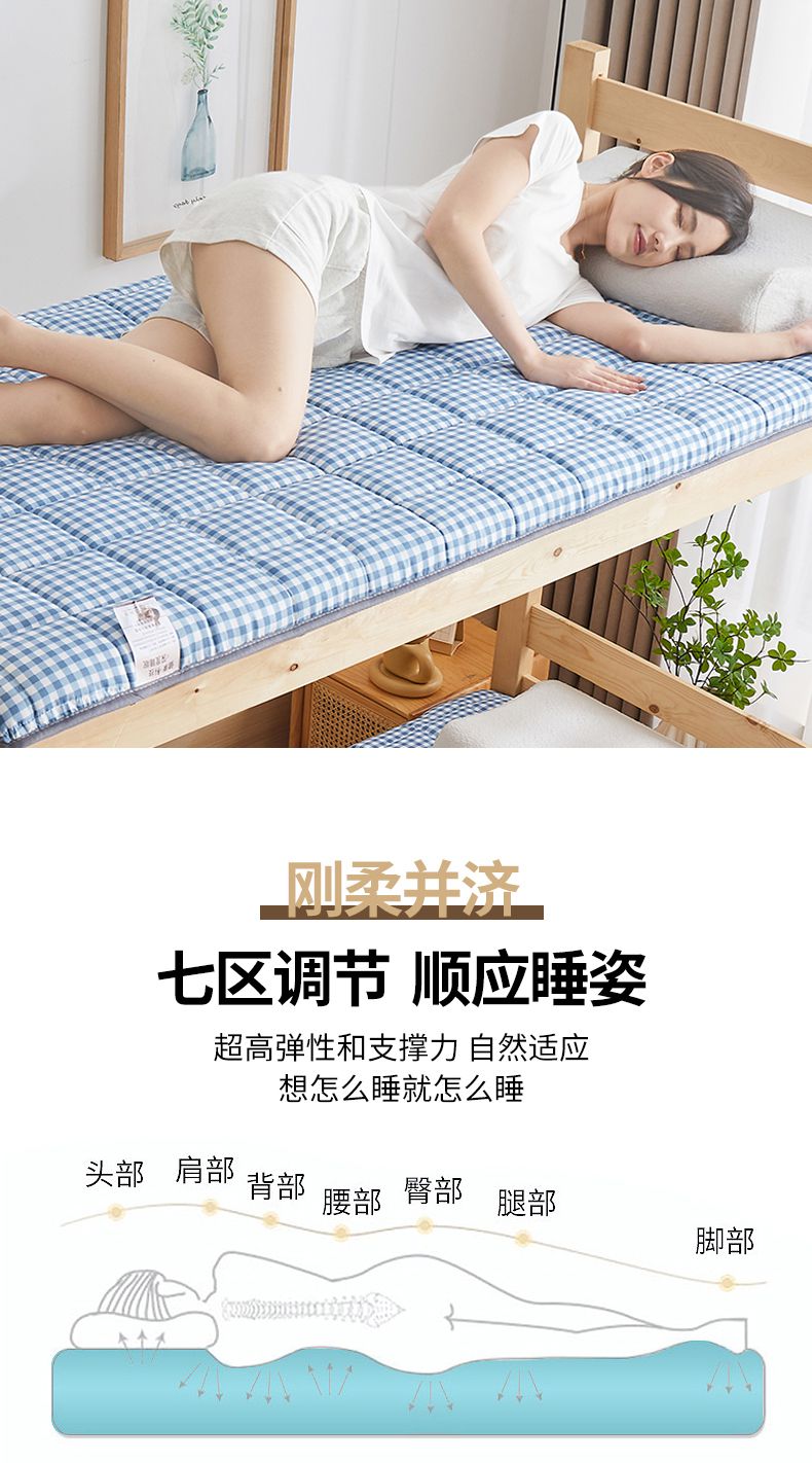 当前位置: 91家纺网 > 商品网购 > 床垫/床褥 > 普通床垫 > 亿丁点 2023新款七区调节活性印染磨毛纤维绗缝学生软床垫 优格-兰