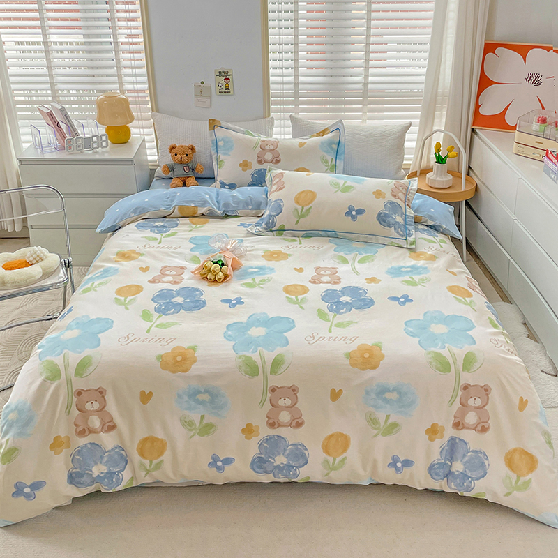 商品名称:乐童 2024新款网红直播爆款吊边+一字绣工艺款四件套(八) 小熊花束