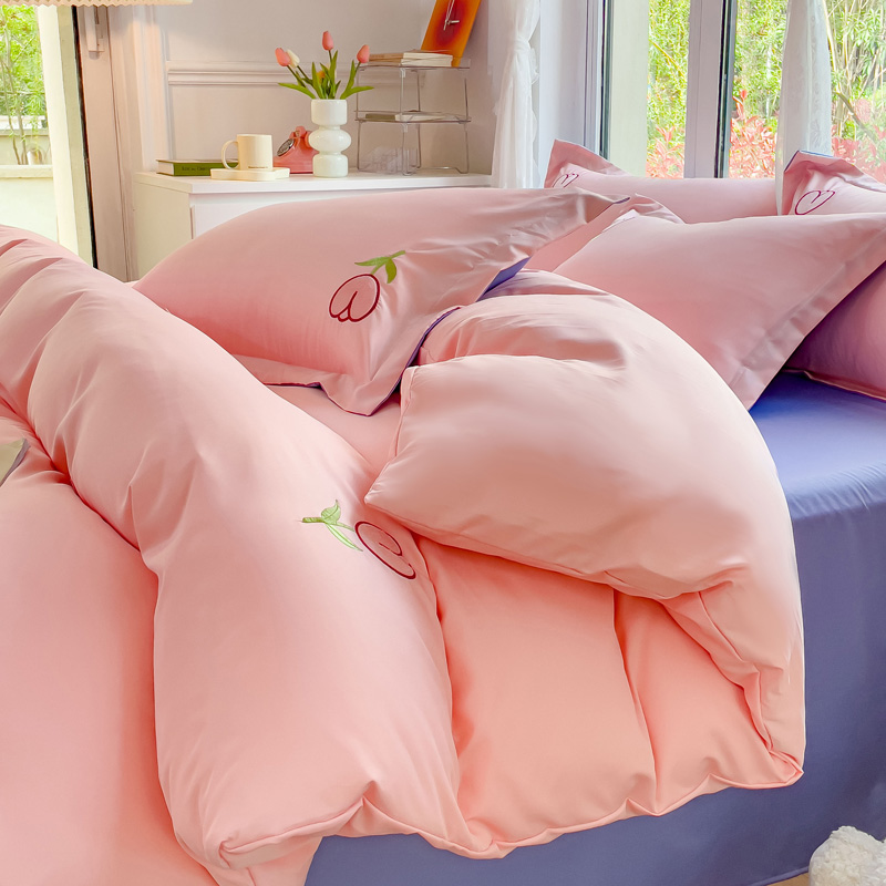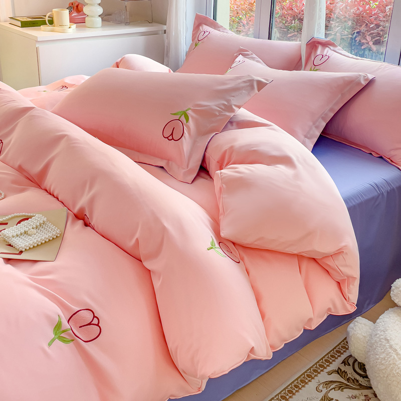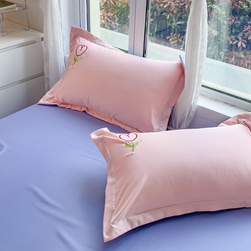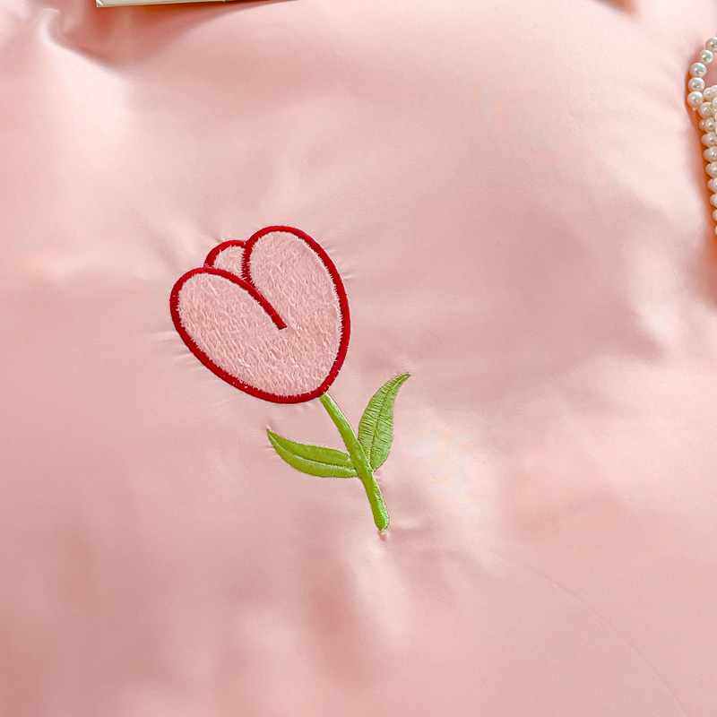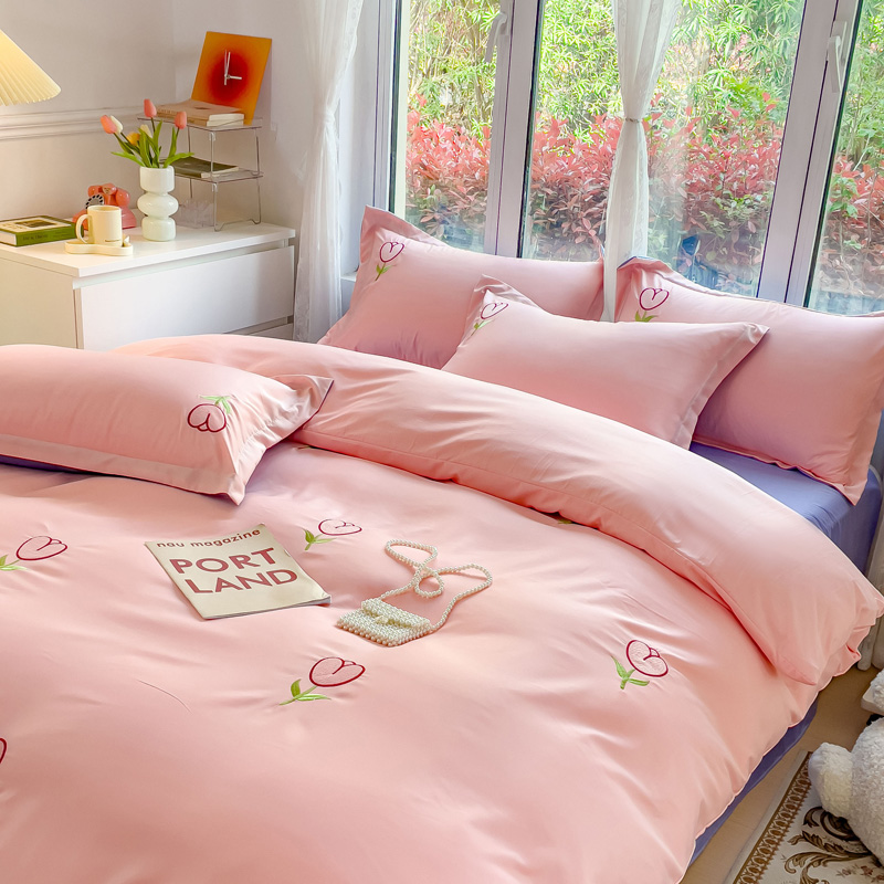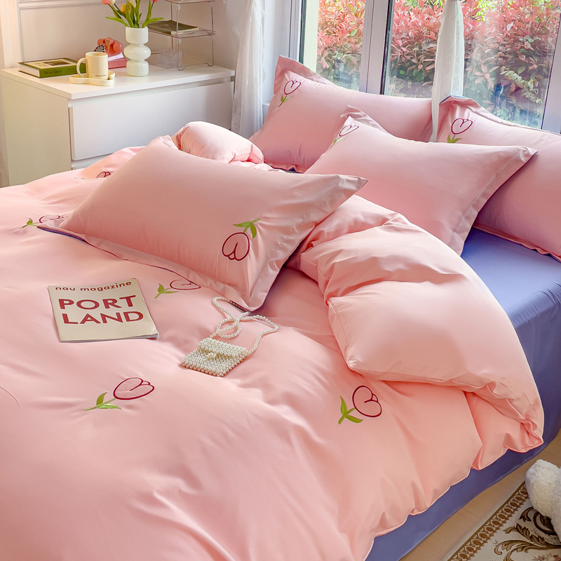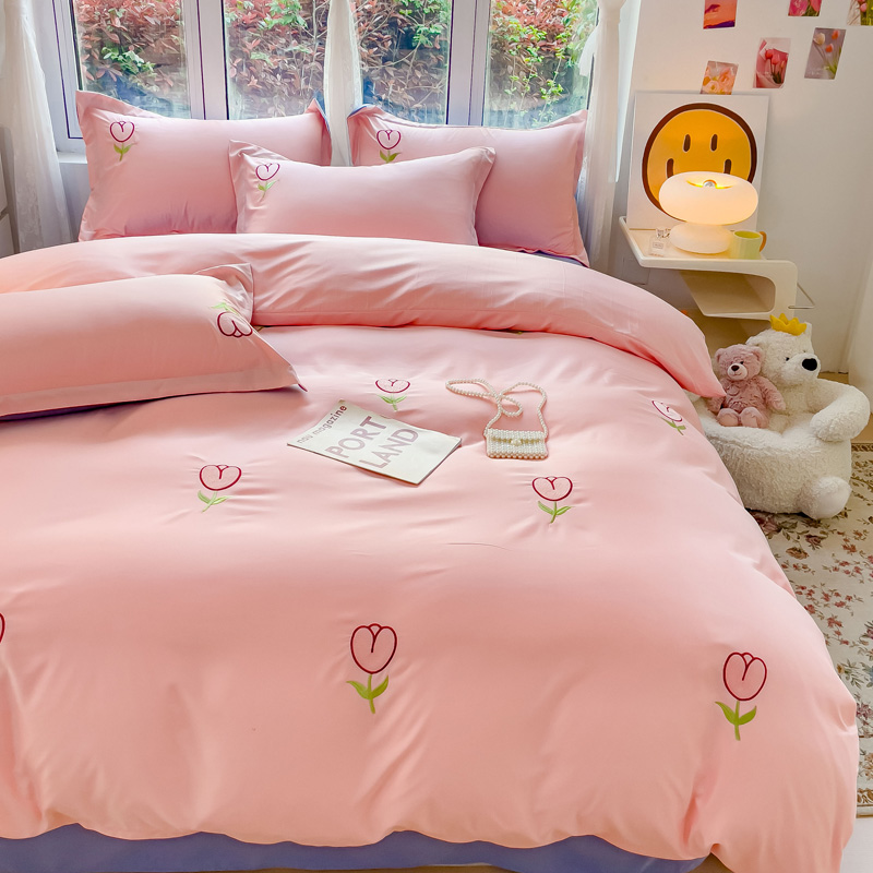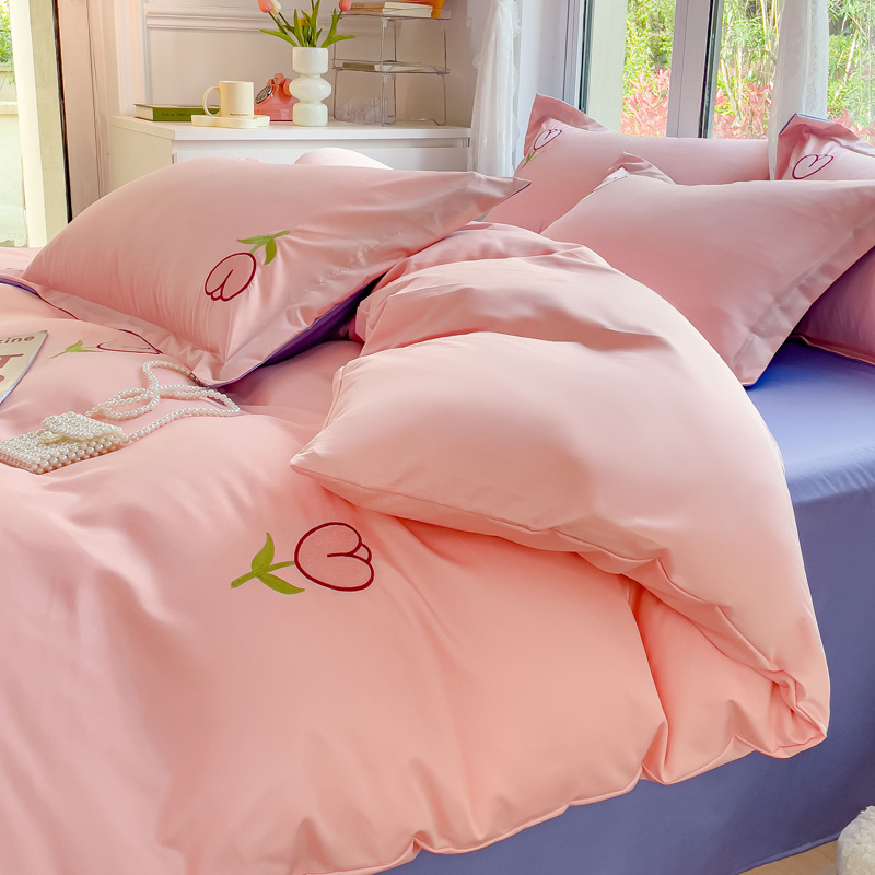 金丝鸟 2023新款水洗真丝贴布绣花四件套 郁金香-嫩粉