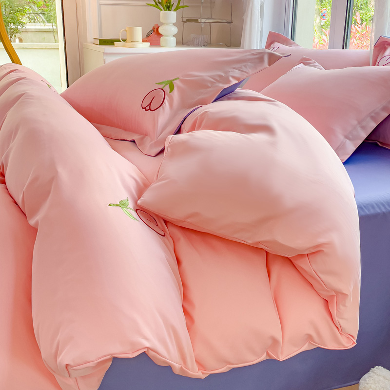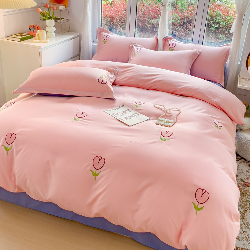 商品名称:金丝鸟 2023新款水洗真丝贴布绣花四件套 郁金香-嫩粉