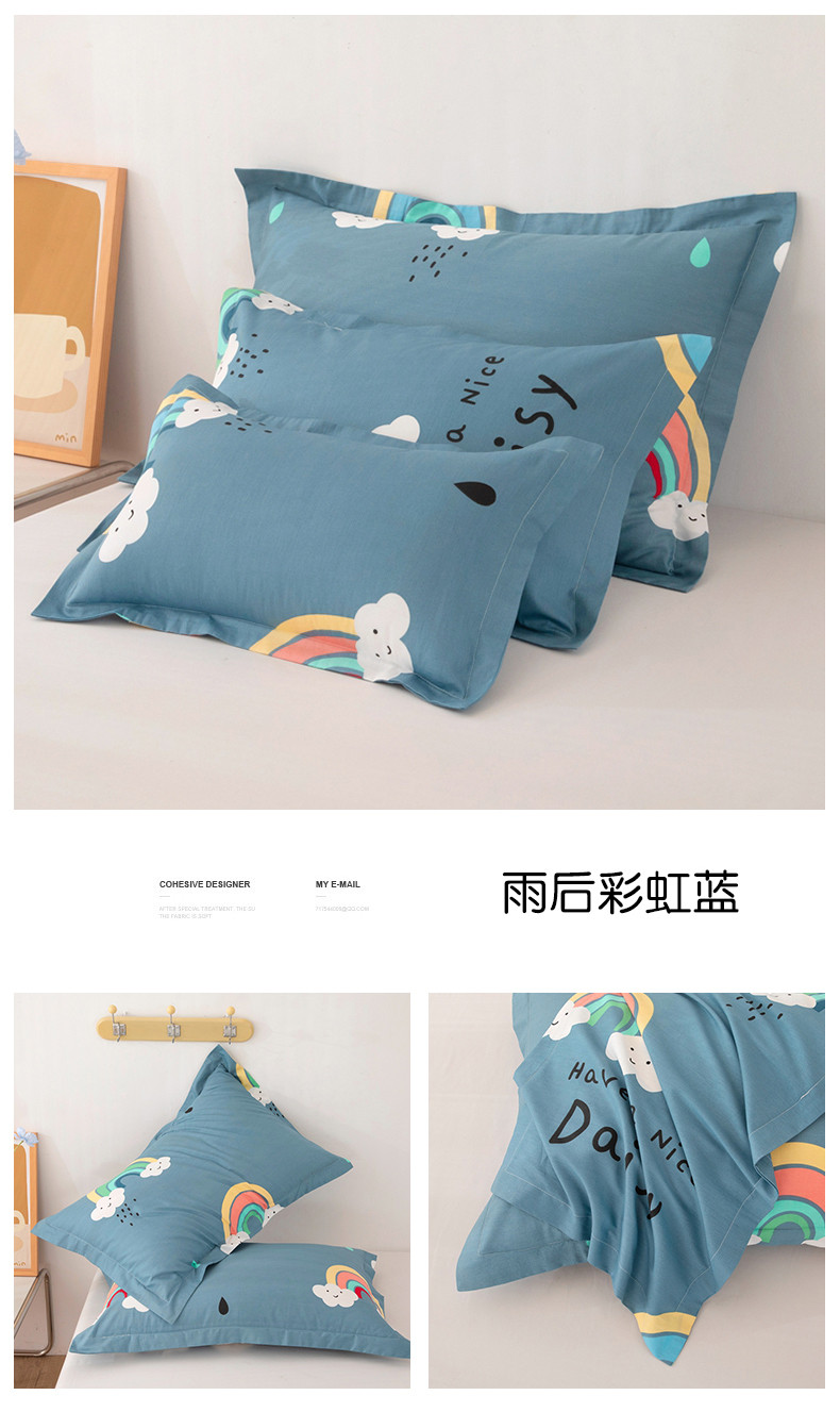商品名称:凌云2025新款13372全棉枕套儿童学生成人枕头套 雨后彩虹蓝