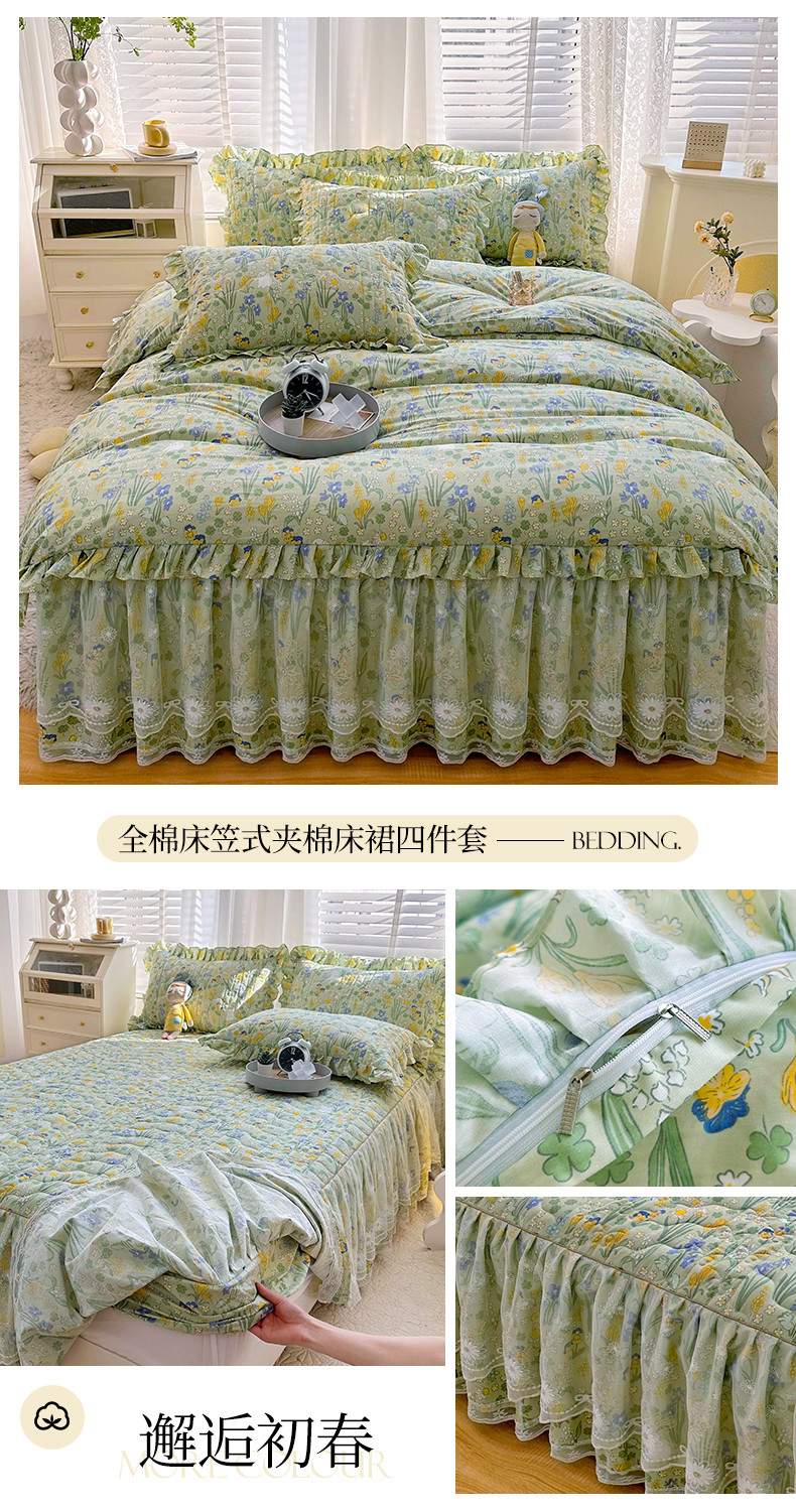 宜凡 2023新款 全棉床笠式床裙四件套 邂逅初春