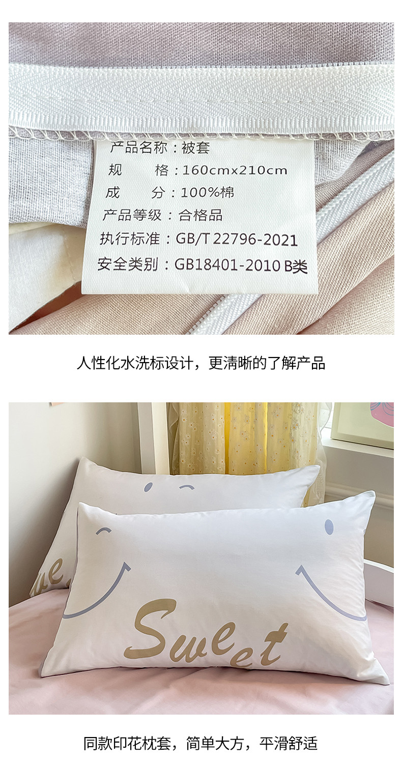 商品名称:金鑫汇 2023新款全棉宿舍印花三件套 奶油粉