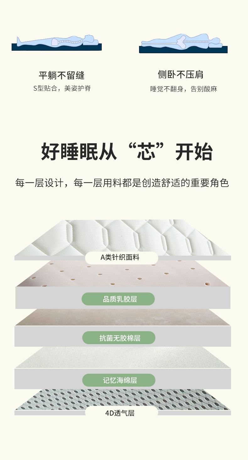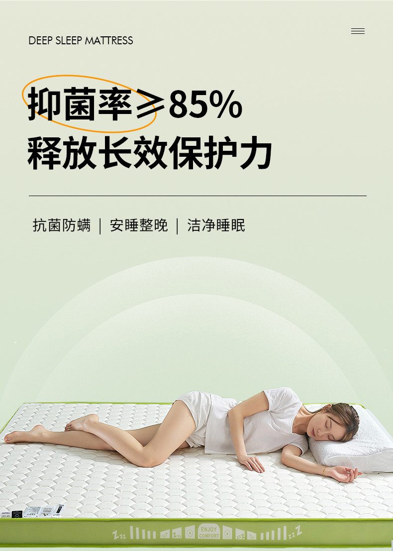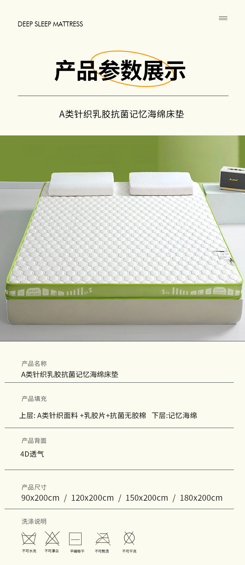 当前位置: 91家纺网 > 商品网购 > 床垫/床褥 > 普通床垫 > 帛奴家纺 2023新款A类乳胶抗菌记忆棉海绵床垫 元气绿