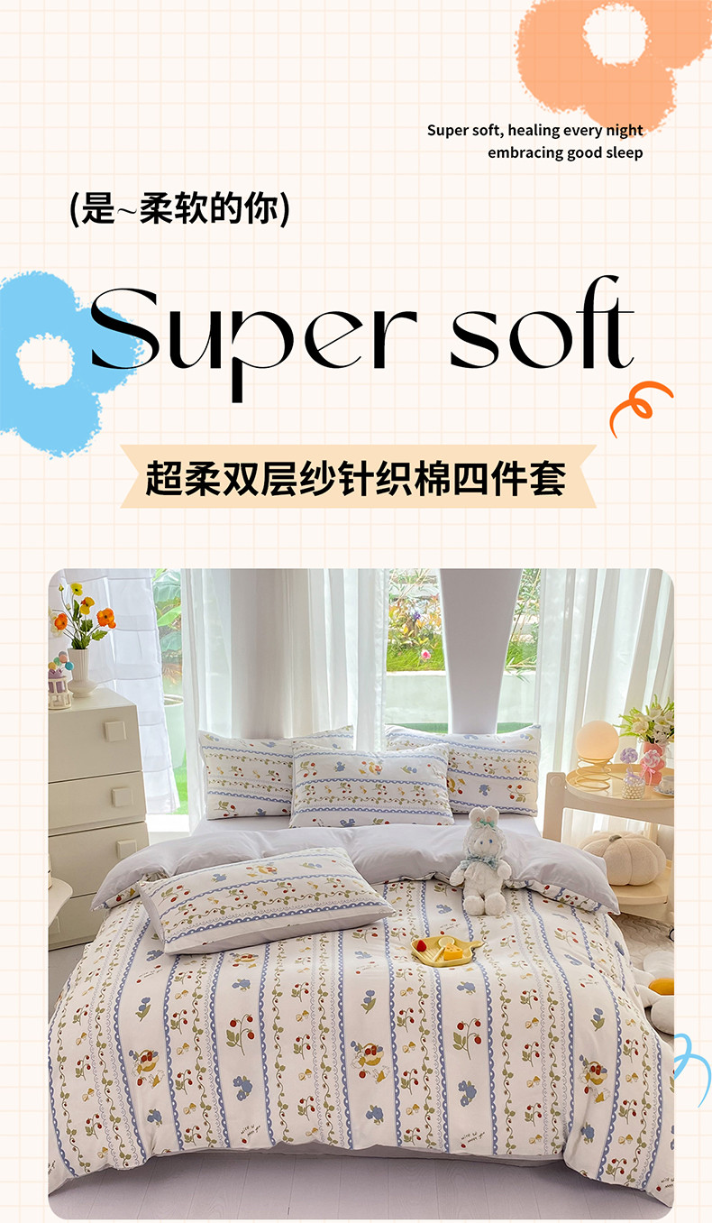 当前位置: 91家纺网 > 商品网购 > 床品套件 > 四件套 > 水洗棉四件套 > 妖妖家纺 2024新款超柔软糯水洗云朵棉印花四季款四件套 花儿与兔