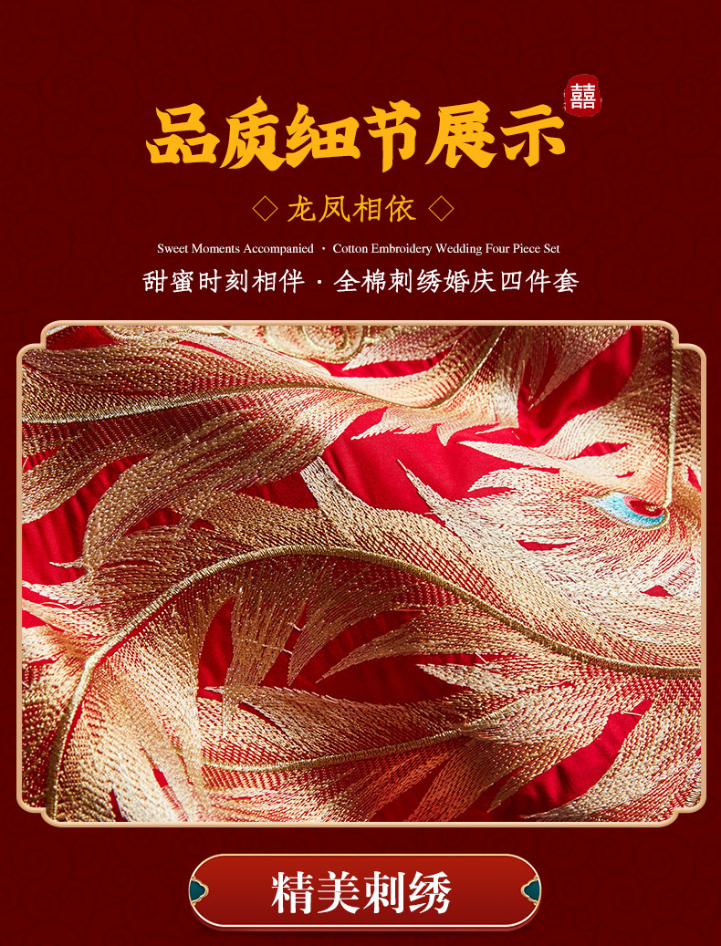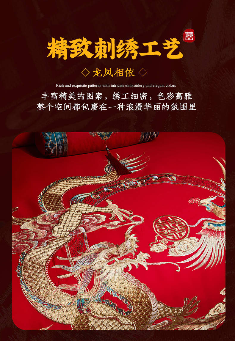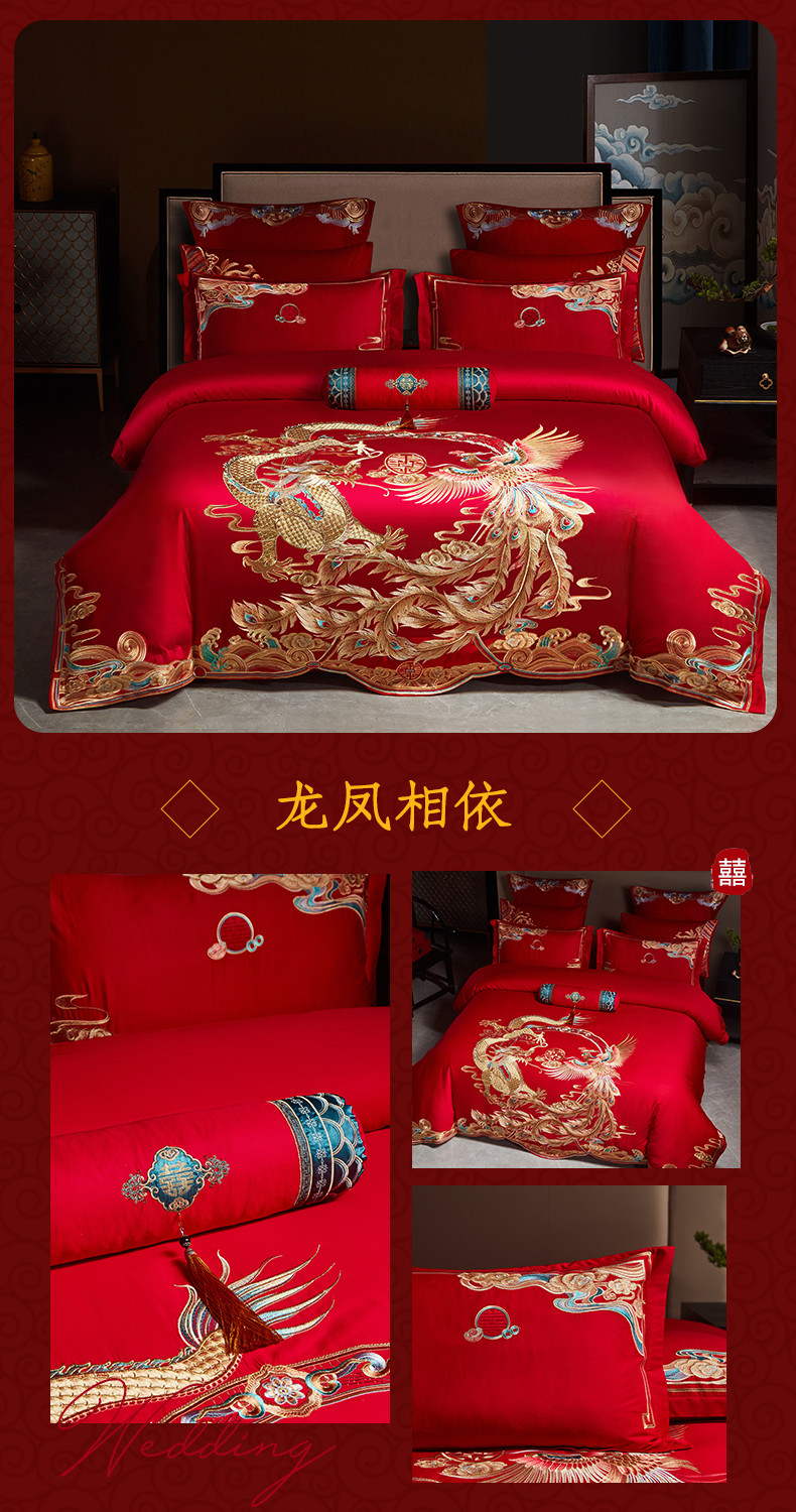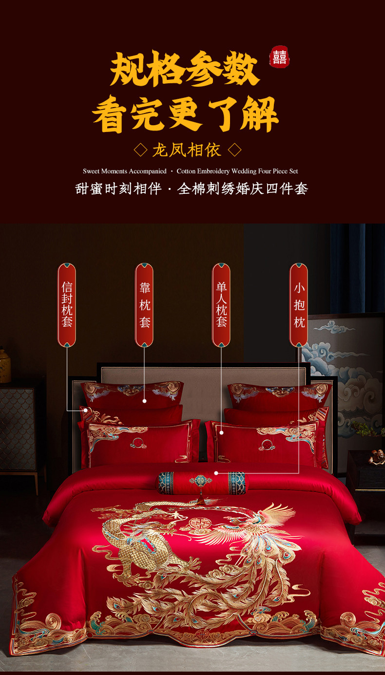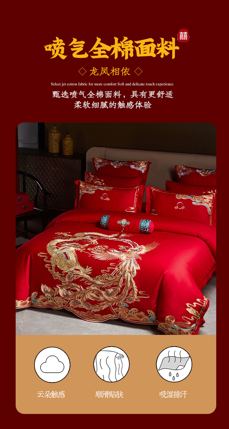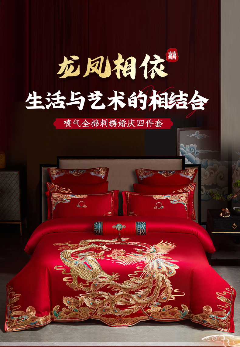 当前位置: 91家纺网 > 商品网购 > 床品套件 > 四件套 > 婚庆四件套 > 振翼 2025新款40s全棉丝光喷气婚庆四件套多件套 龙凤相依