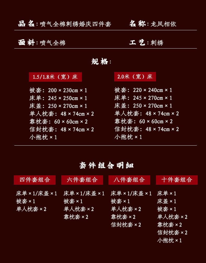 标准床盖式八件套(四件套+方垫一对+信封枕一对) | ¥405.00 |