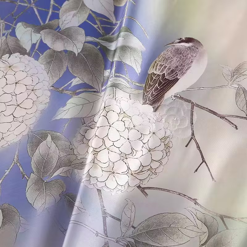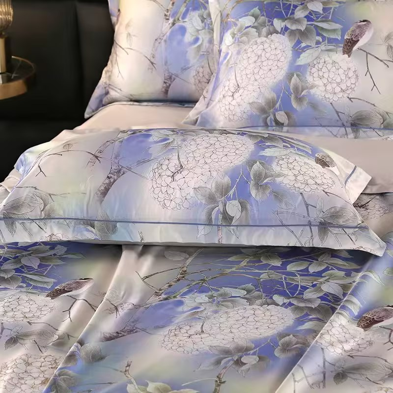 富之航家纺 2023新款水洗天丝数码印花四件套 花开富贵-蓝