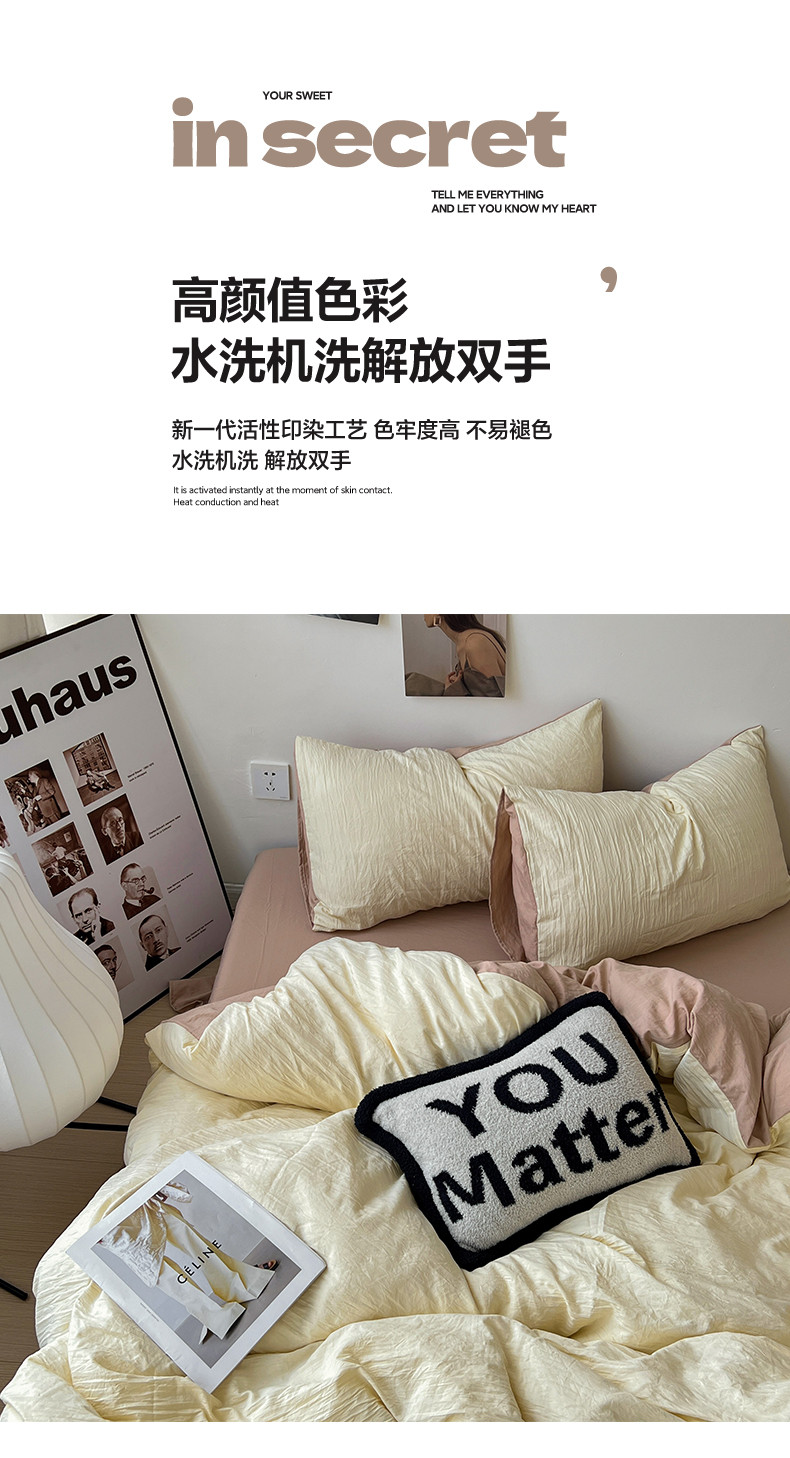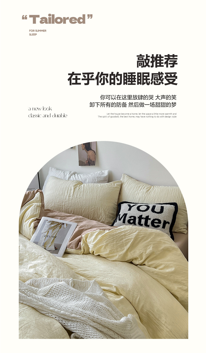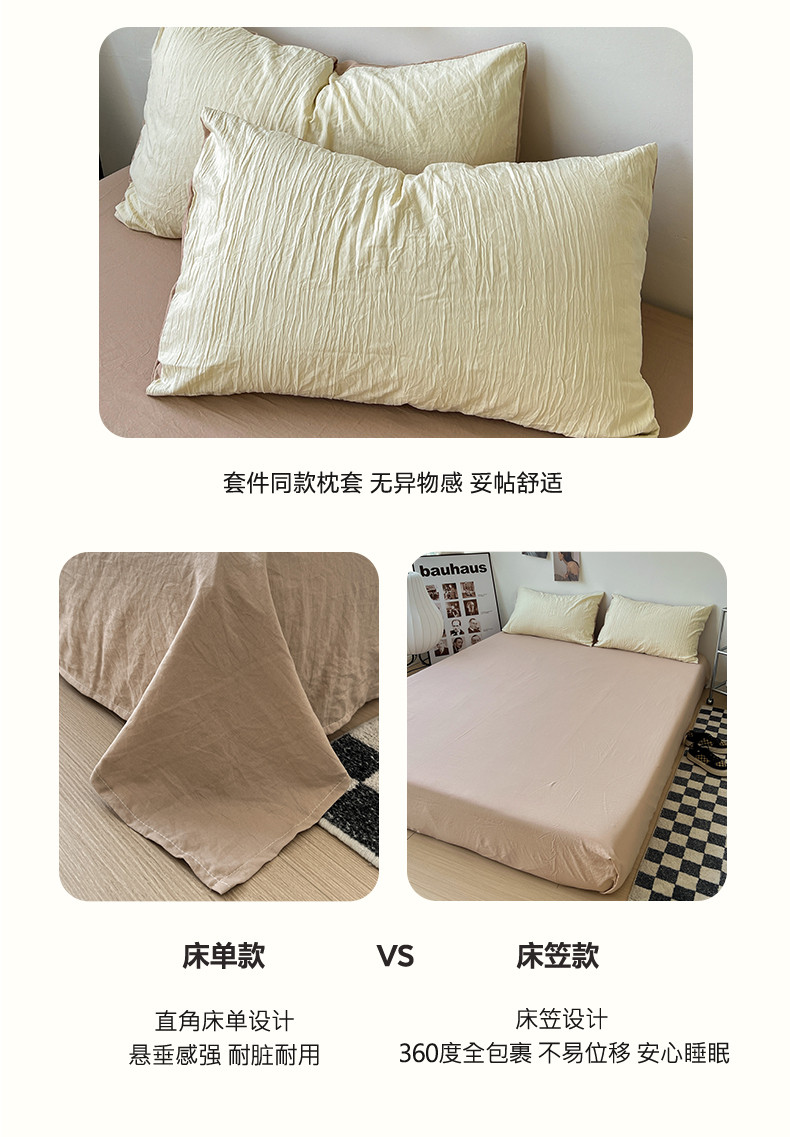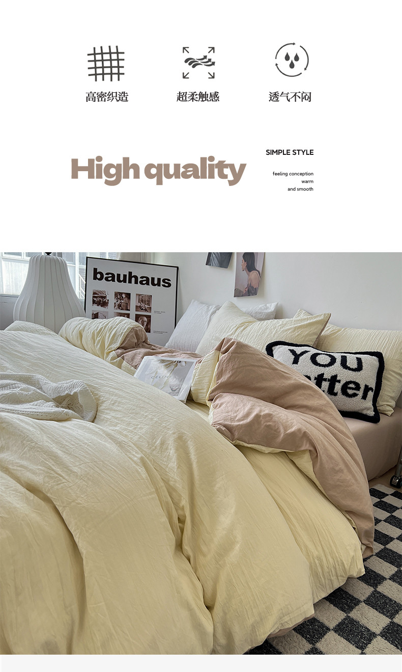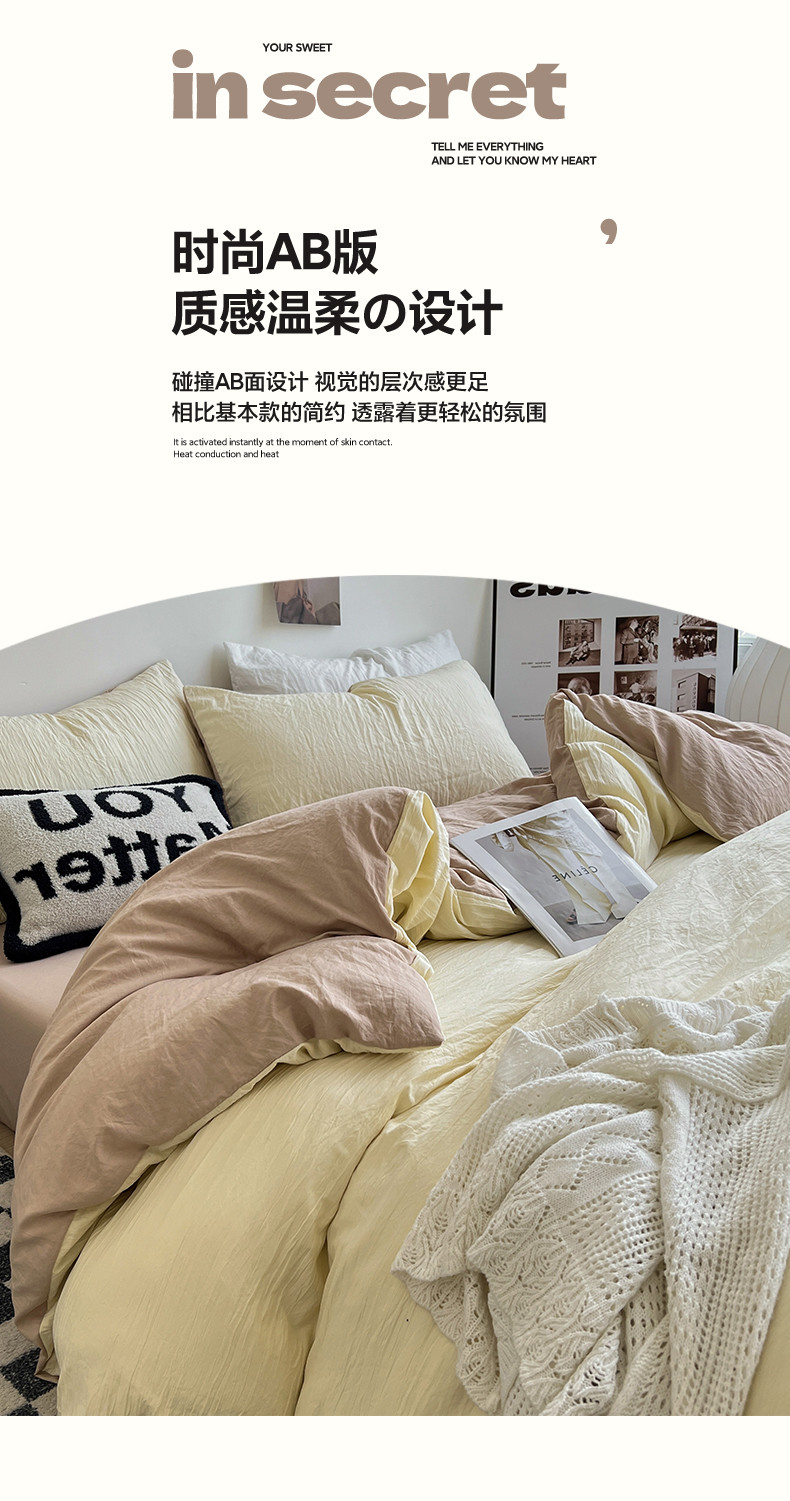 商品名称:水墨江南 2023新款超柔水洗棉简约纯色四件套 米黄中驼