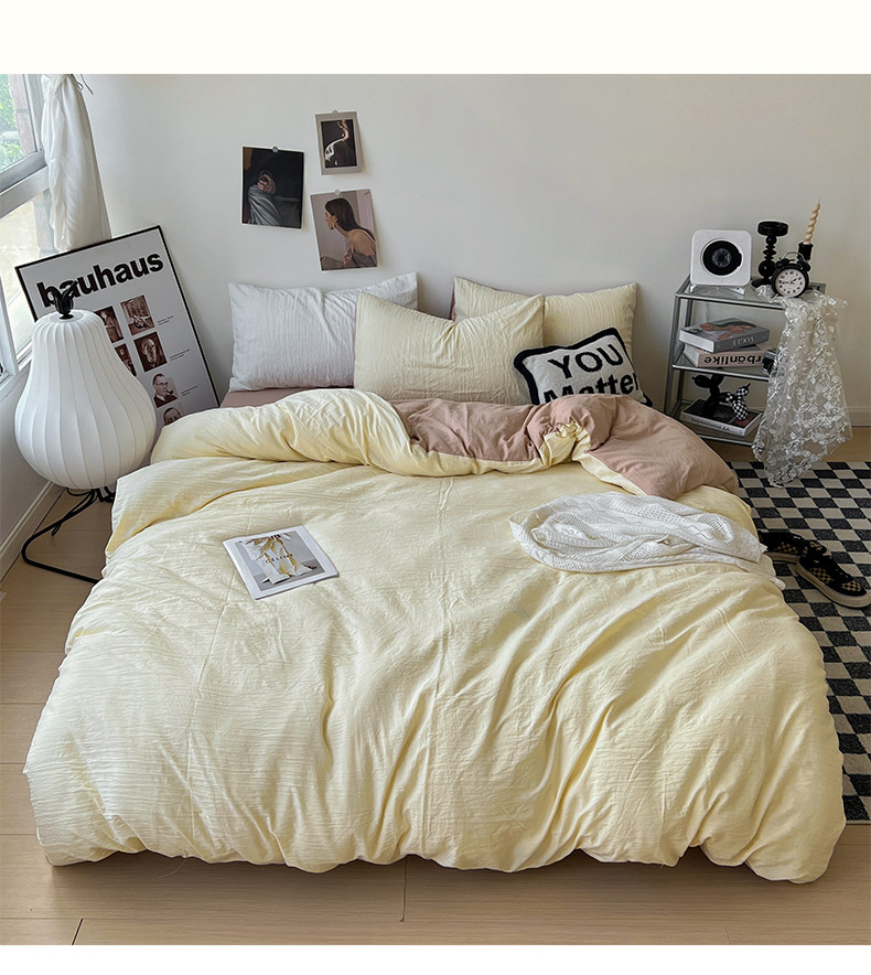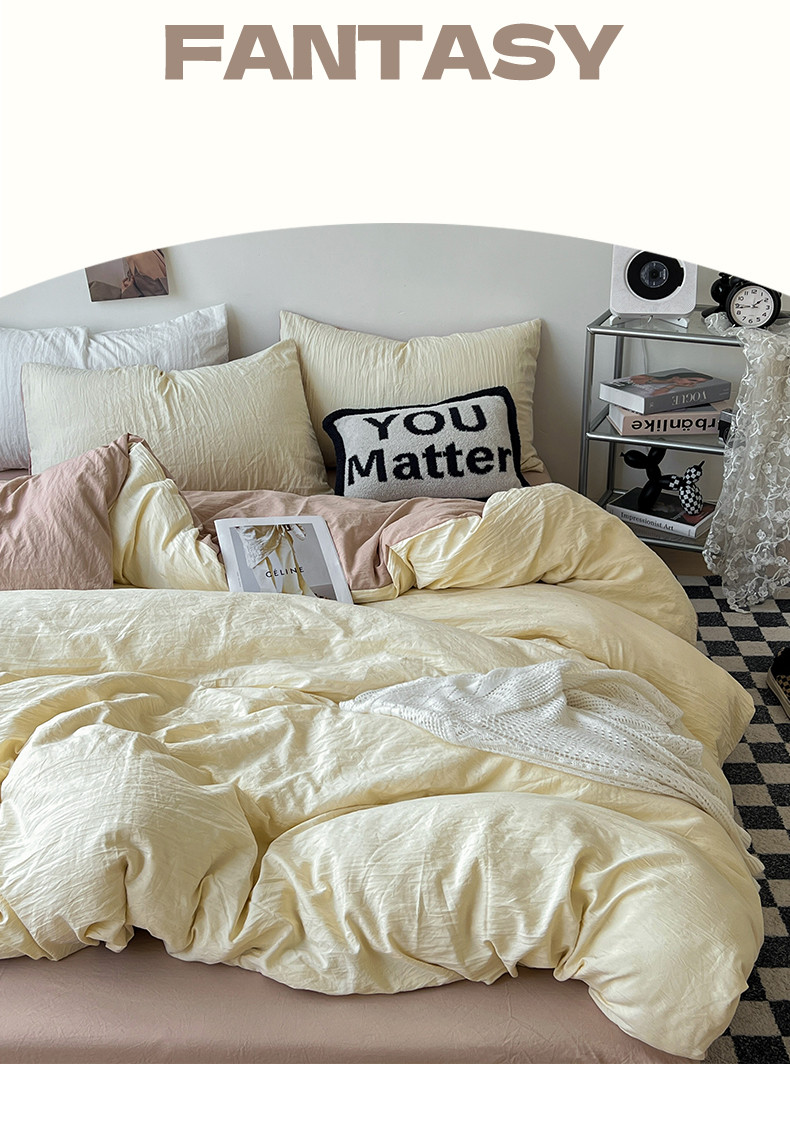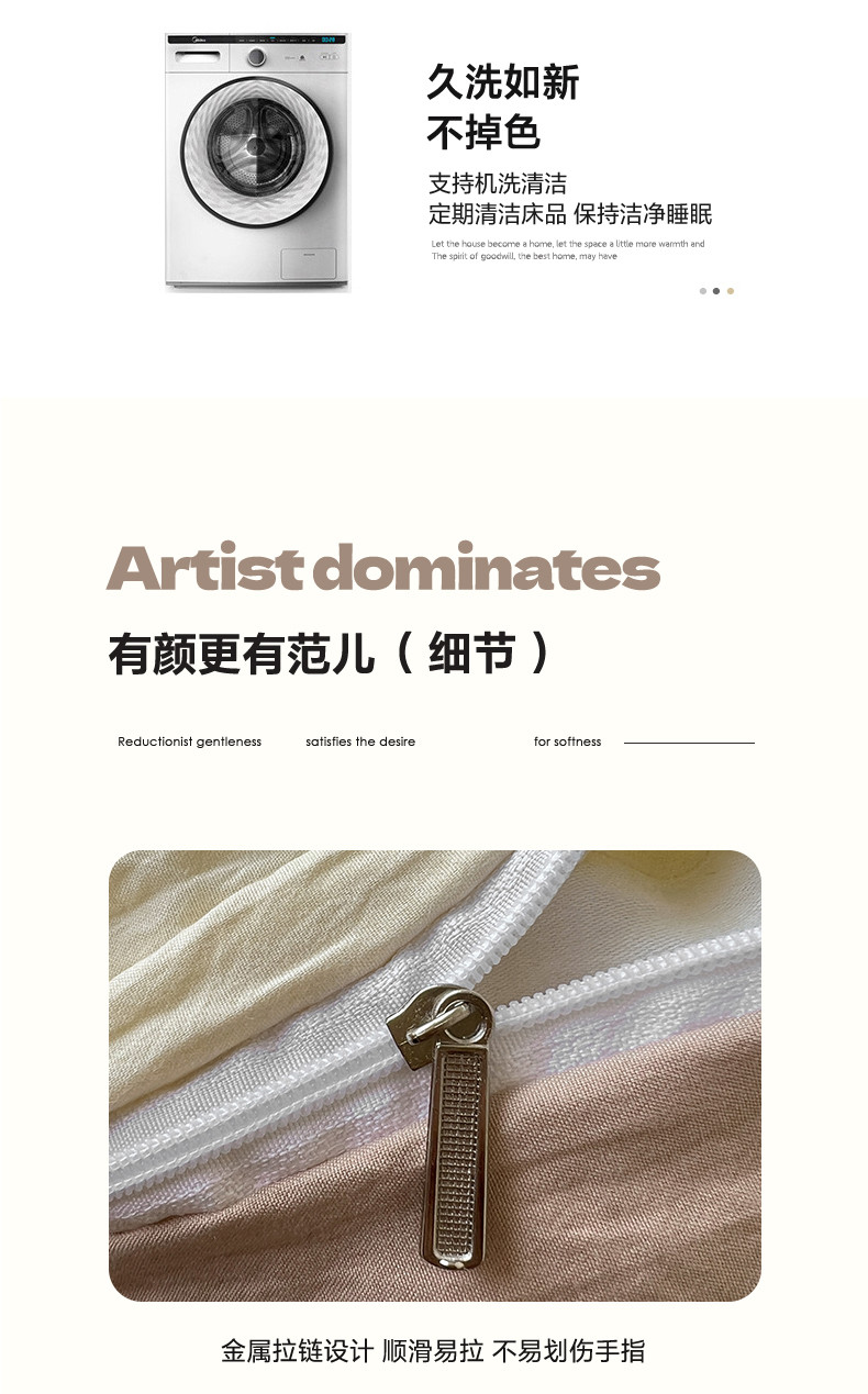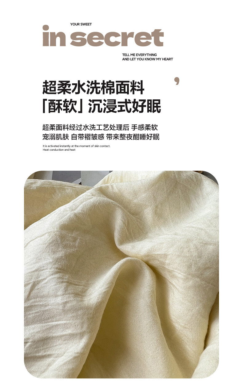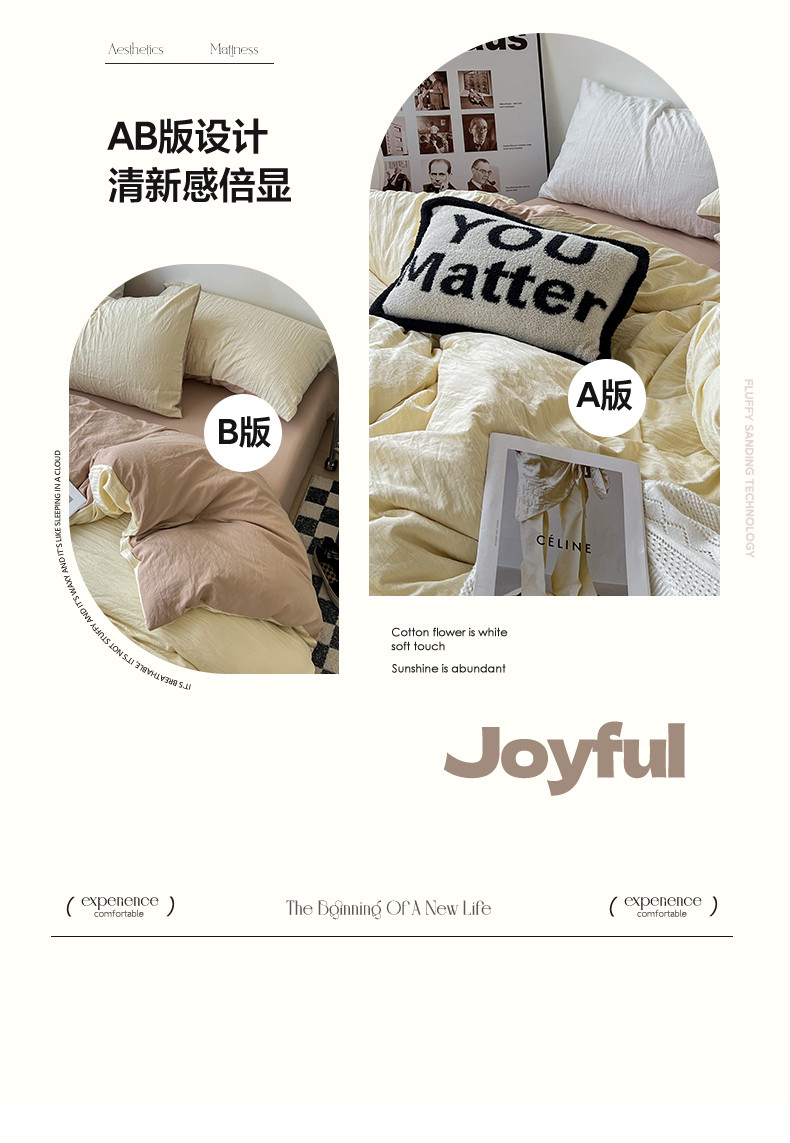 商品名称:水墨江南 2023新款超柔水洗棉简约纯色四件套 米黄中驼