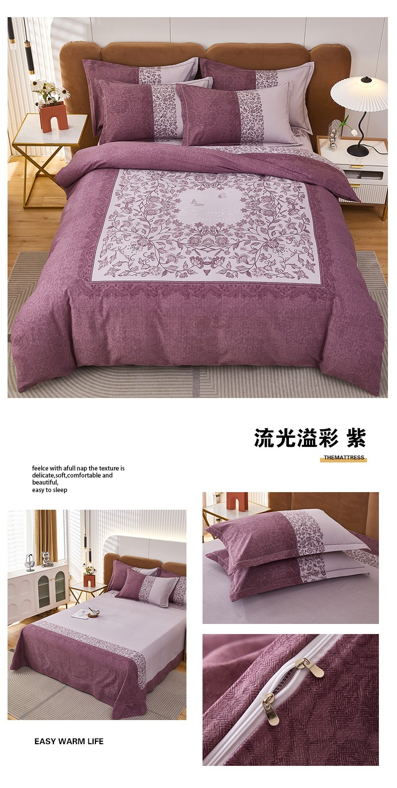 雲归梦 2023年新款加厚全棉生态磨毛大版四件套 流光溢彩-紫