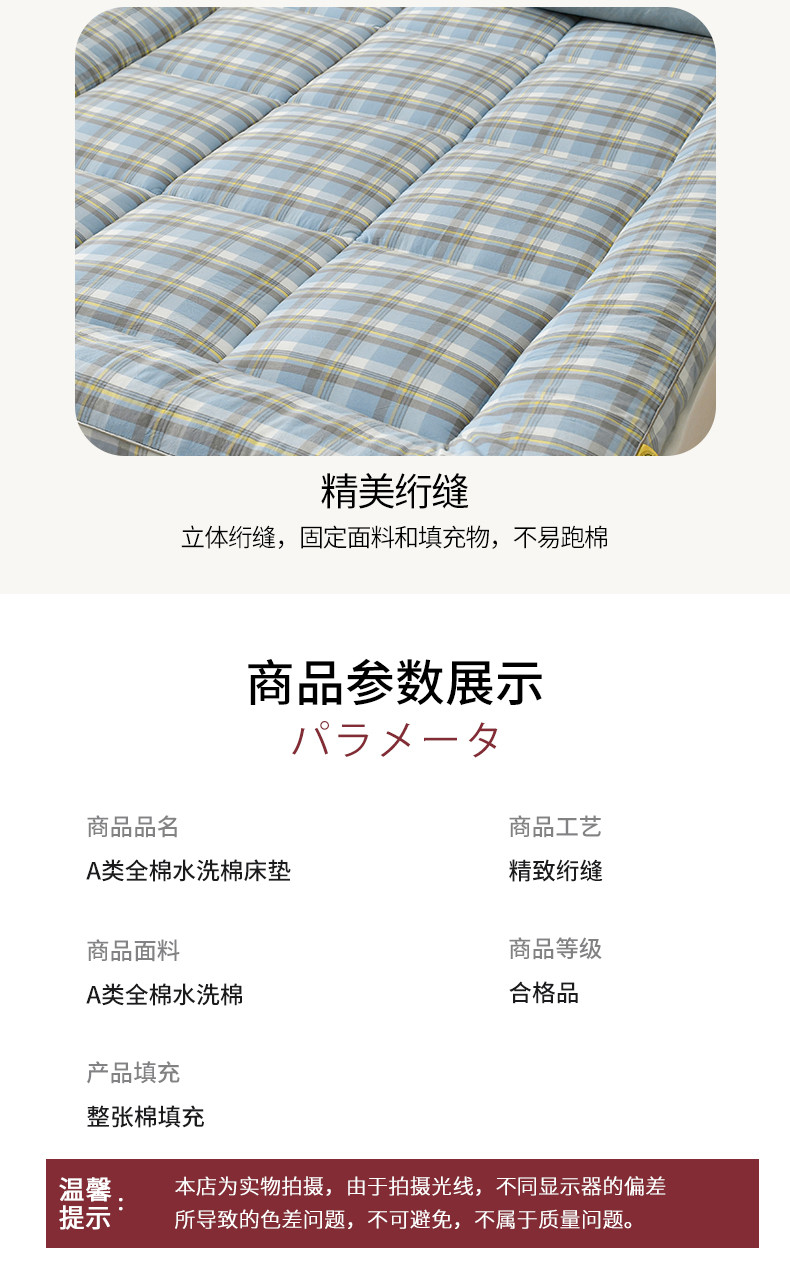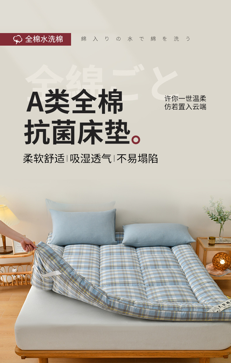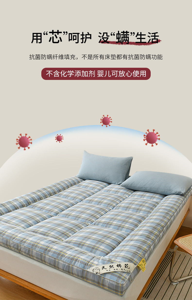当前位置: 91家纺网 > 商品网购 > 床垫/床褥 > 普通床垫 > 鑫钰 2023新款纯棉全棉色织水洗床垫整张羽丝棉填充床褥垫褥软垫 丁香蓝格