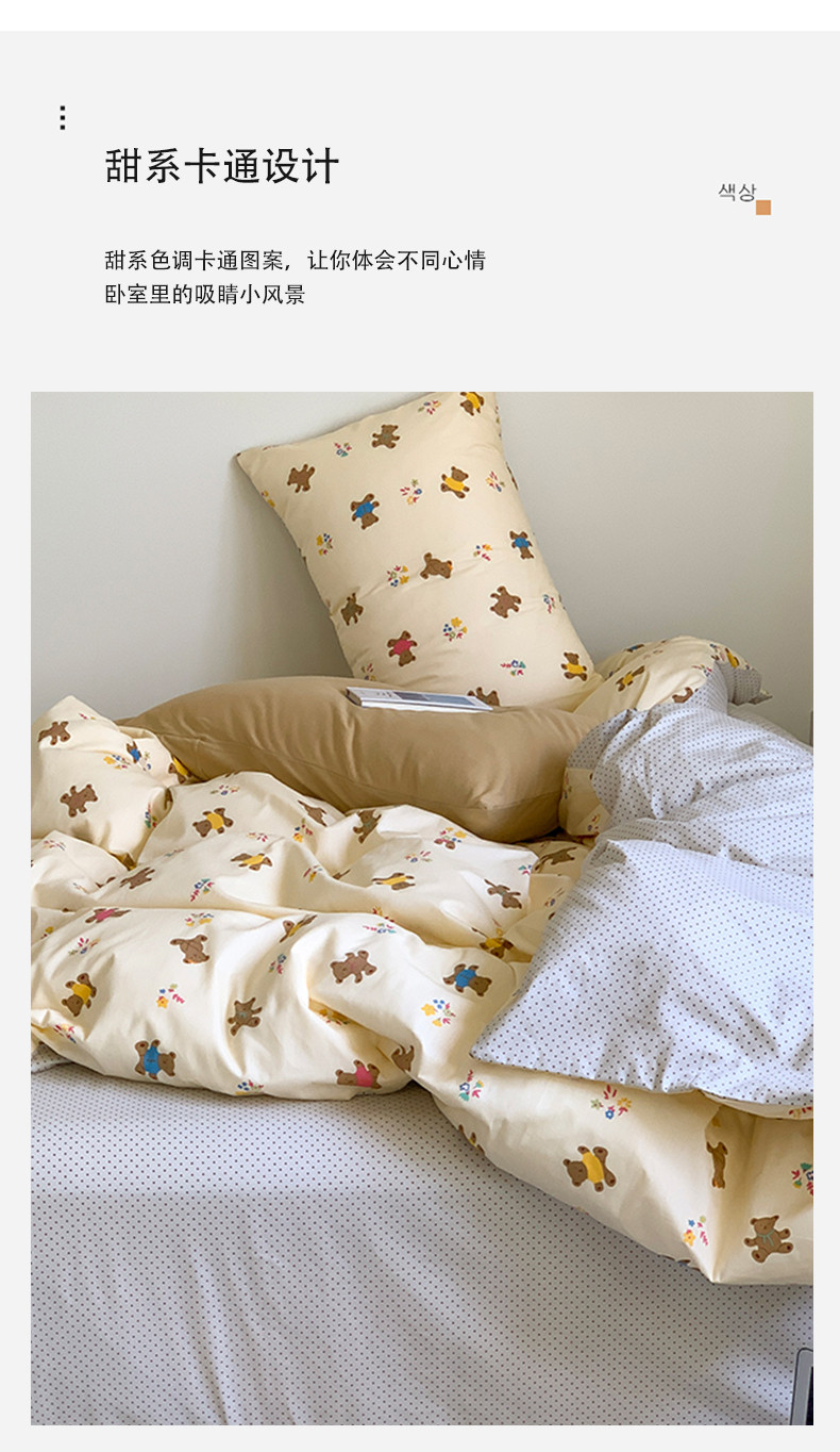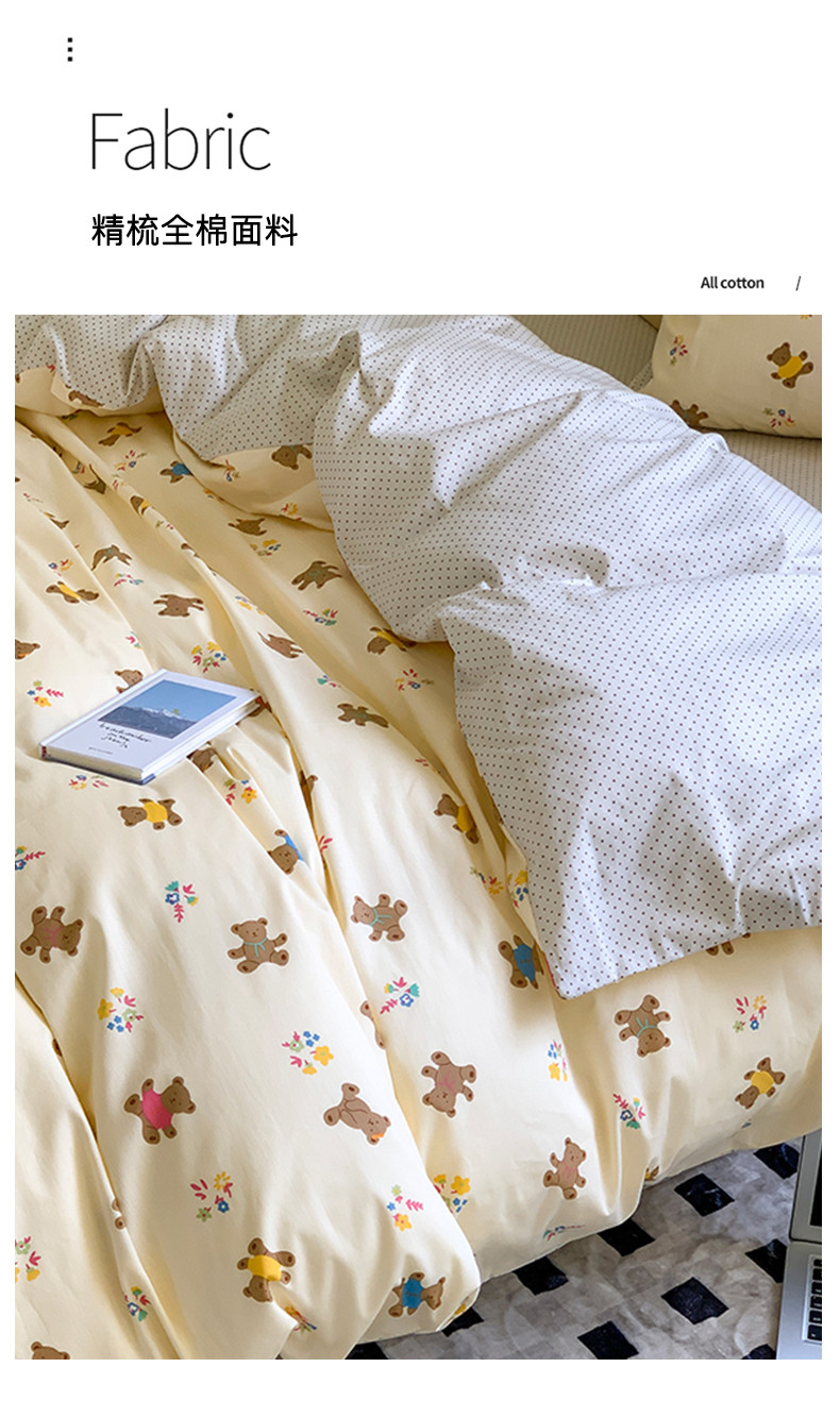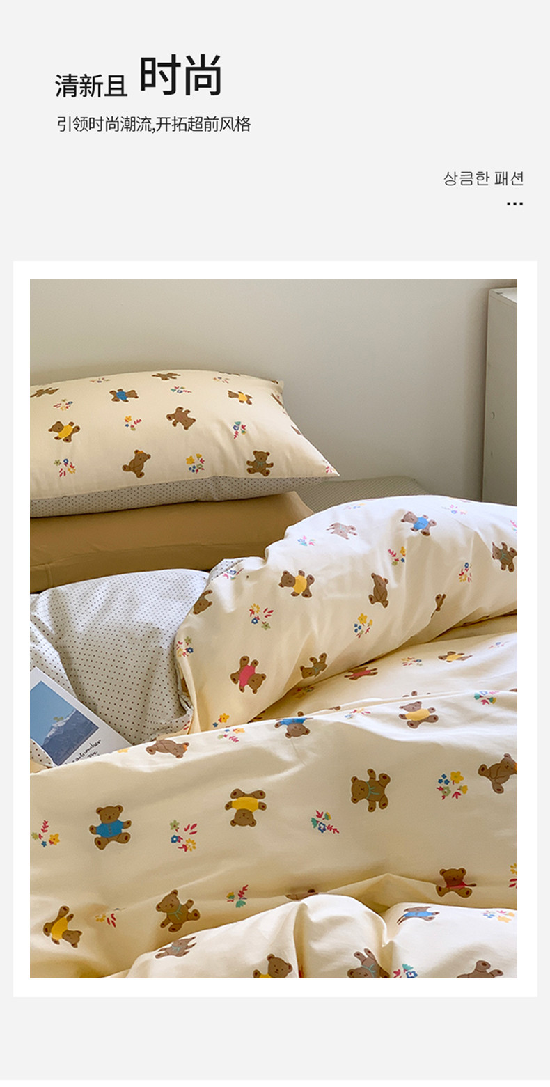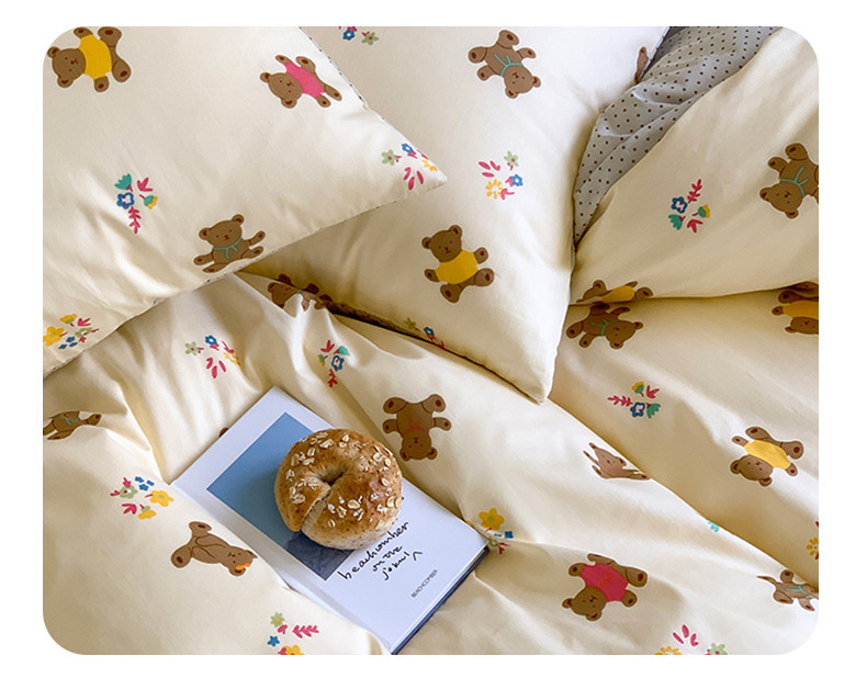 商品名称:桃喜 2024新款40支13372全棉少女风四件套 饼干熊