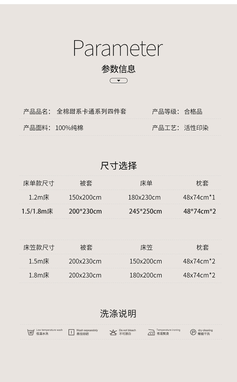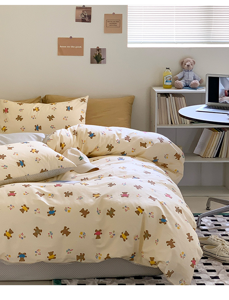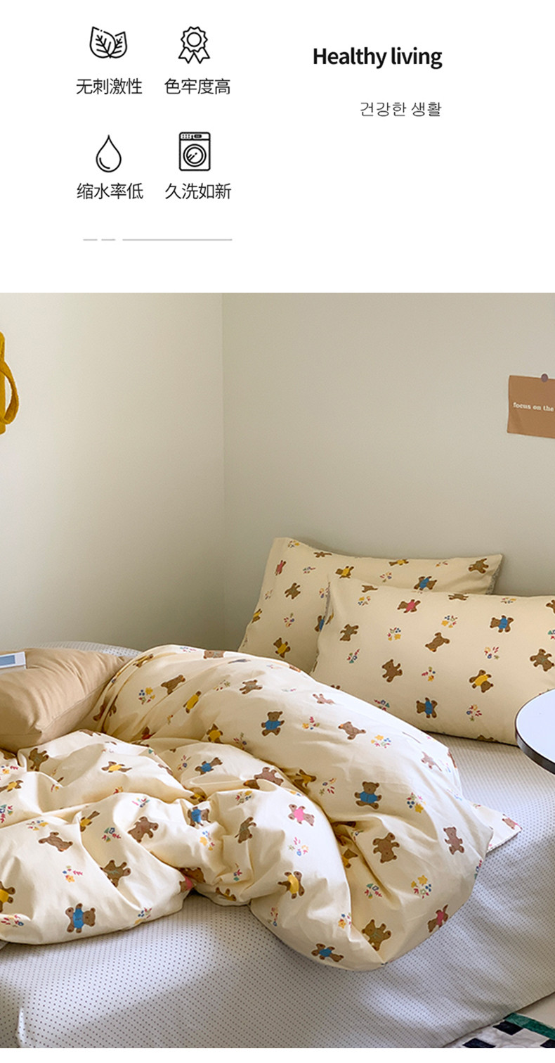 商品名称:桃喜 2024新款40支13372全棉少女风四件套 饼干熊