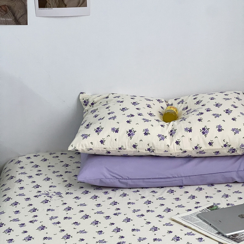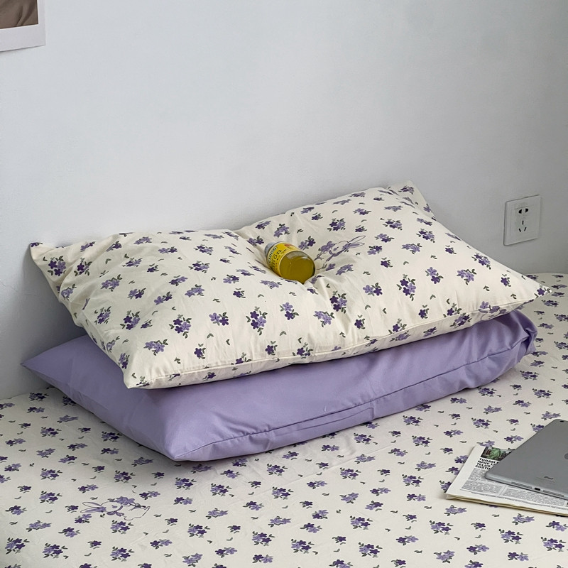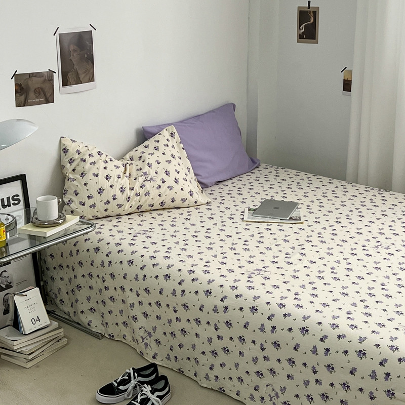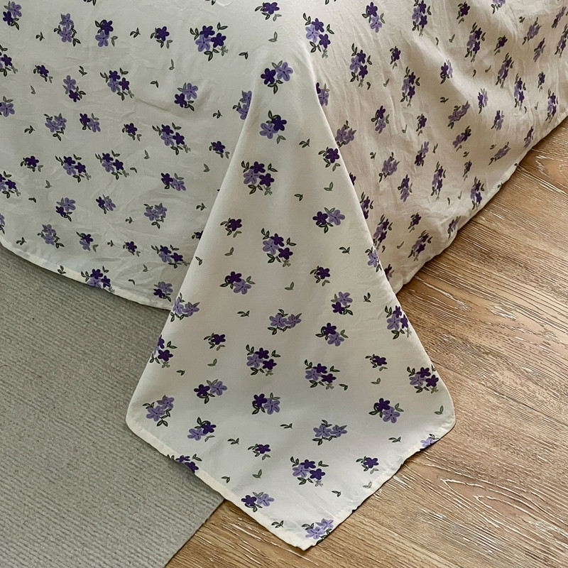 直播热款水洗棉双层纱四件套碎花简约风床单单品单件 浅紫+花园兔