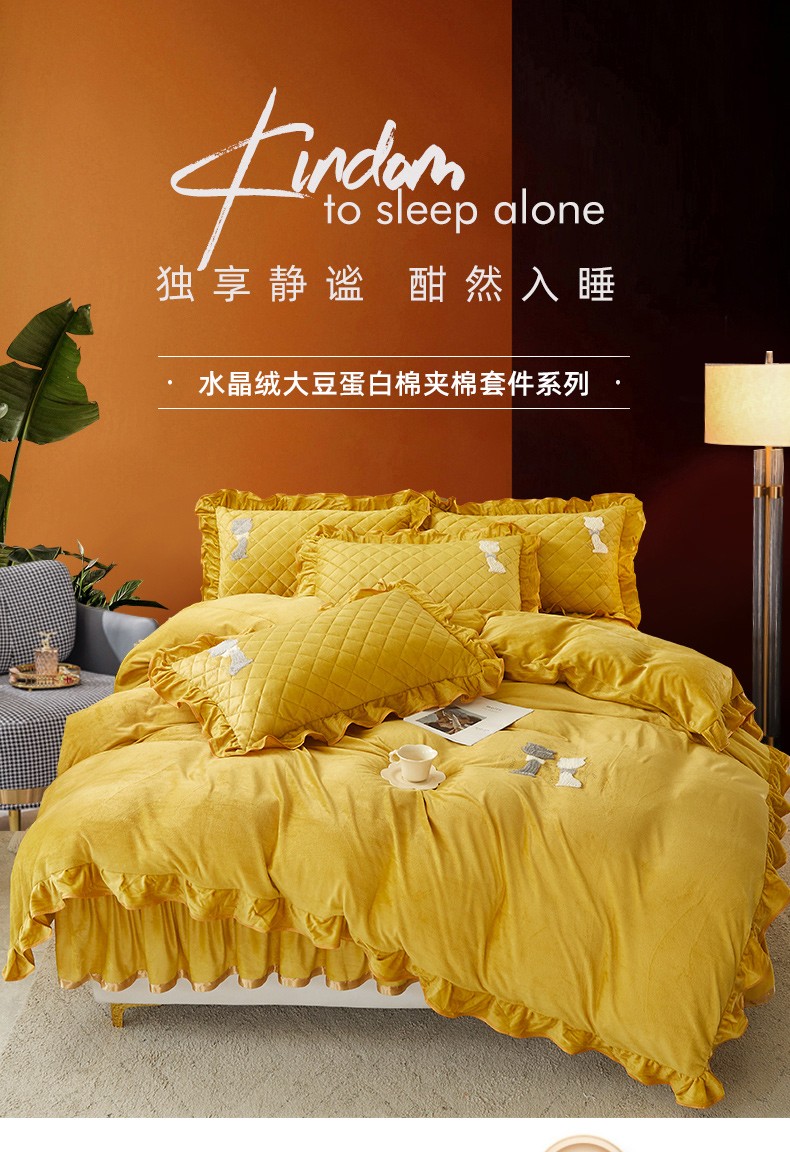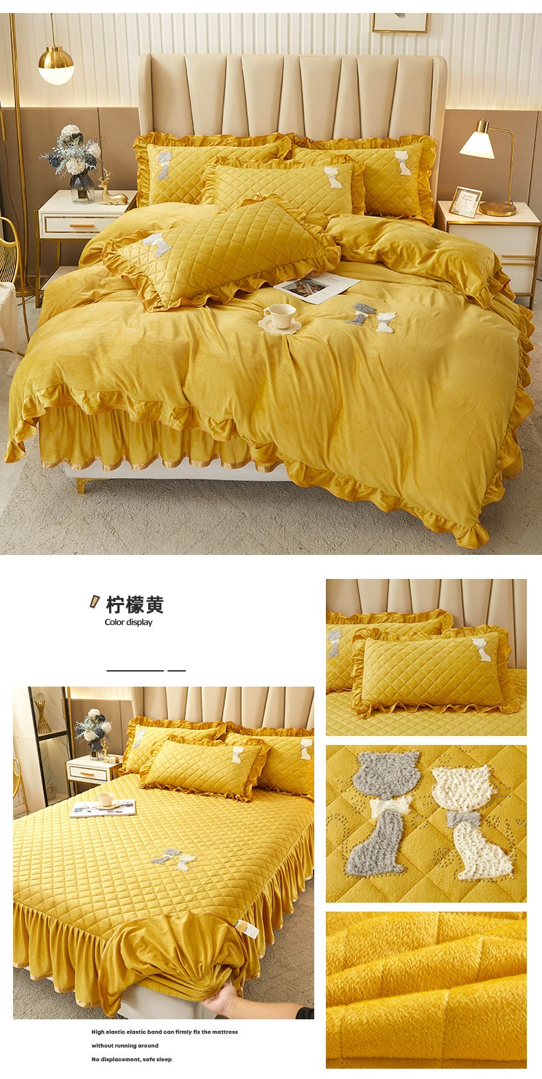 当前位置: 91家纺网 > 商品网购 > 床品套件 > 四件套 > 水晶绒四件套 > 恋尚 2023新款水晶绒夹棉床裙床笠四件套-KT猫系列 柠檬黄