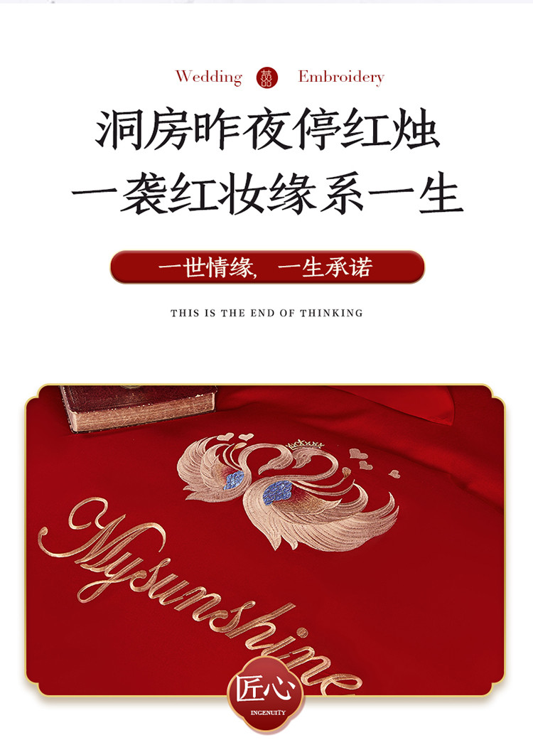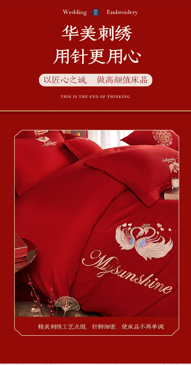 当前位置: 91家纺网 > 商品网购 > 床品套件 > 四件套 > 婚庆四件套 > 玉雅家纺 2025新款亲肤刺绣婚庆四件套 相恋