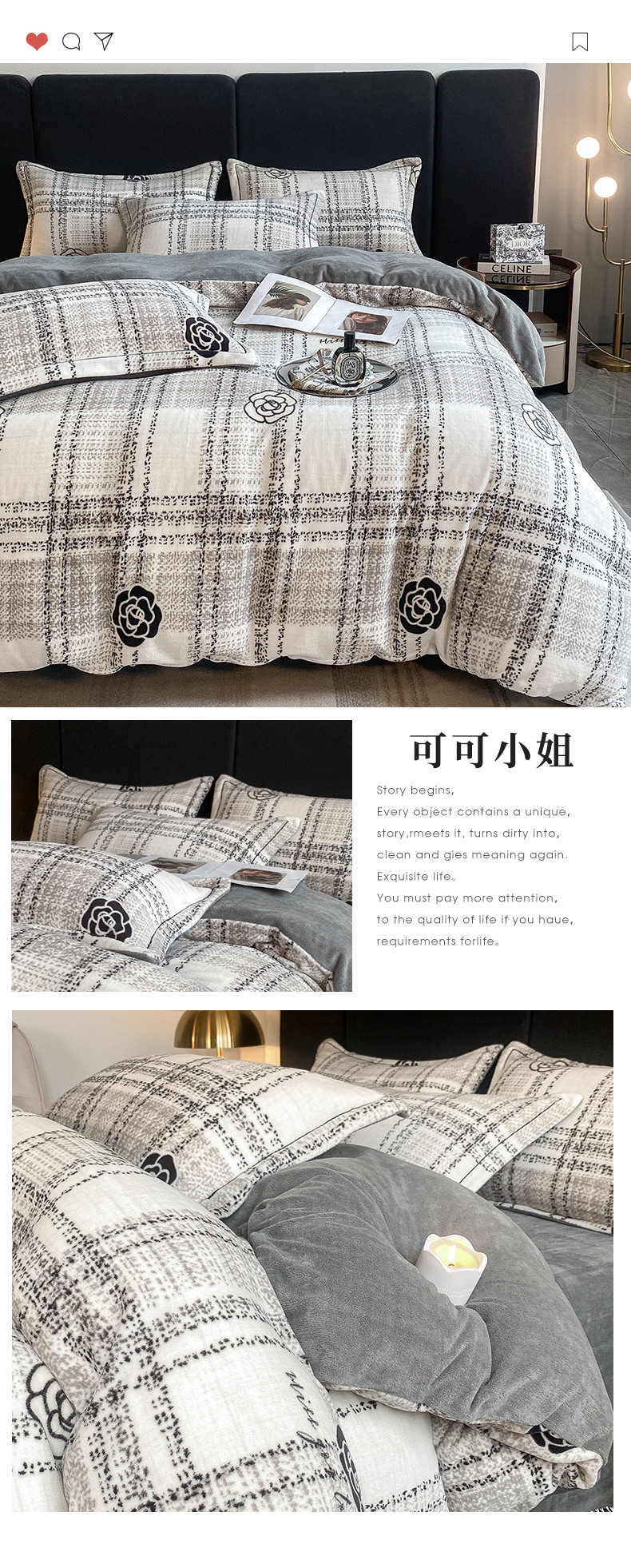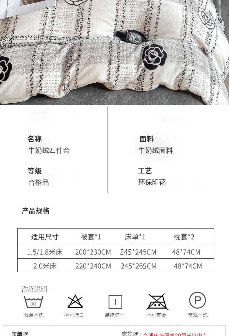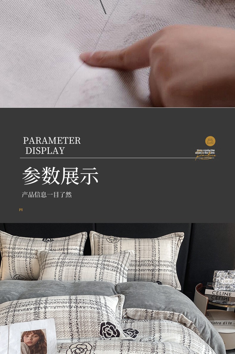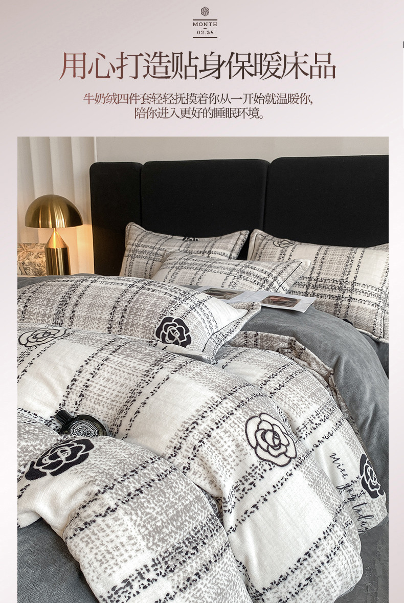 当前位置: 91家纺网 > 商品网购 > 床品套件 > 四件套 > 牛奶绒四件套 > 花漾 2024新款欧式轻奢压线牛奶绒四件套 可可小姐