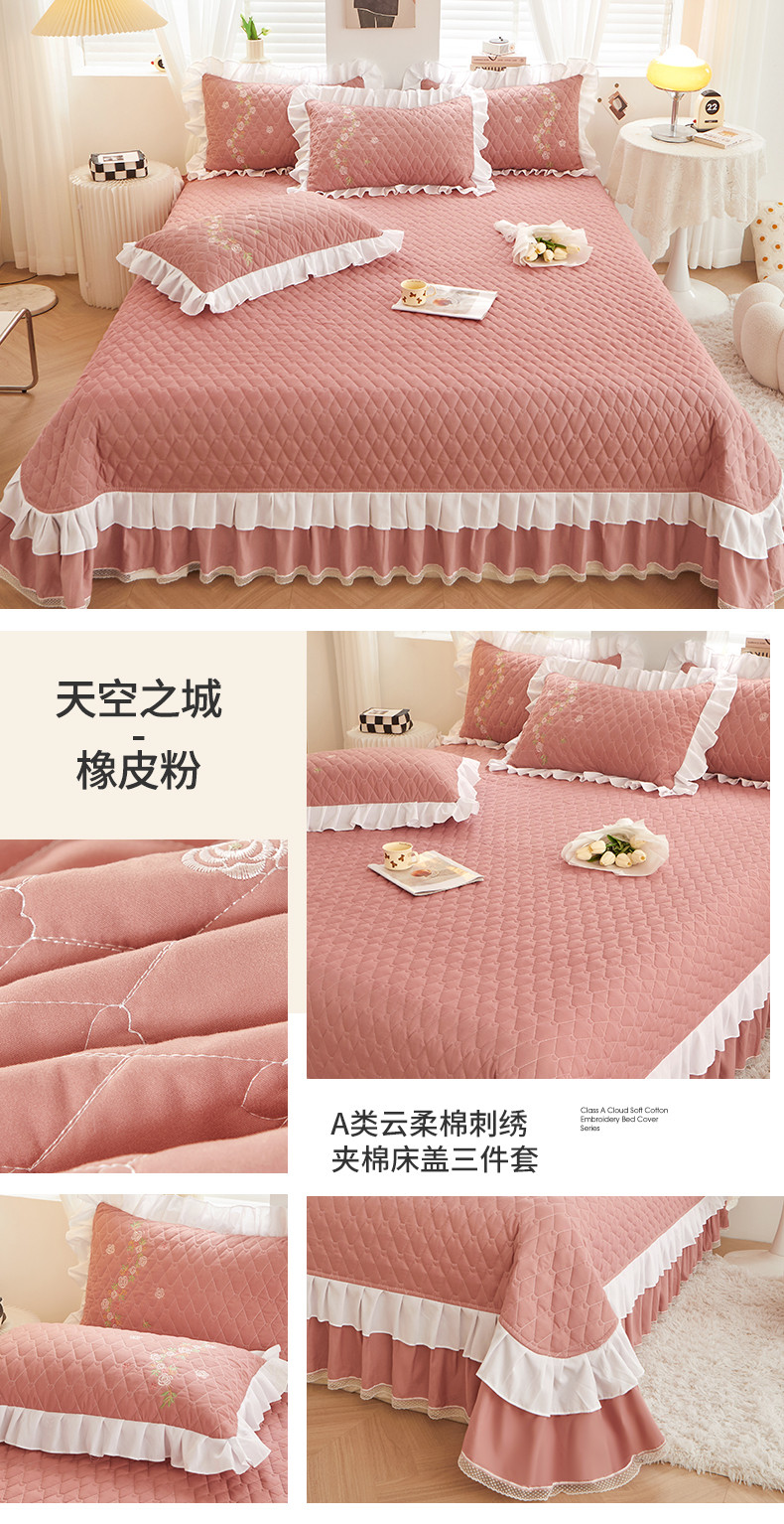 当前位置: 91家纺网 > 商品网购 > 床品套件 > 三件套 > 宜凡 2023新款A类云柔棉床盖夹棉三件套 橡皮粉