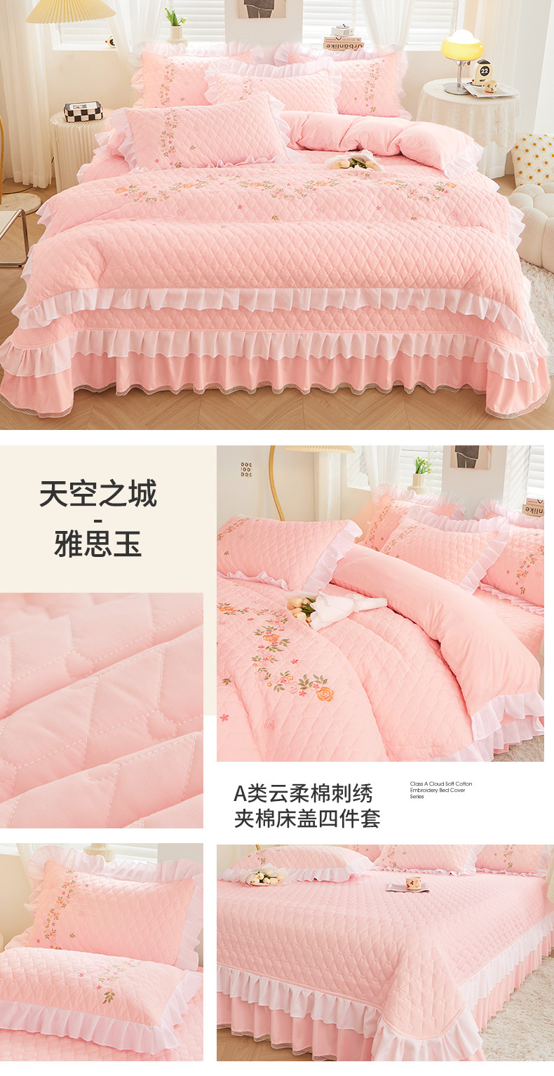 • 91家纺网 家纺一手货源 找家纺 宜凡 2023新款A类云柔棉床盖夹棉四件套 雅思玉