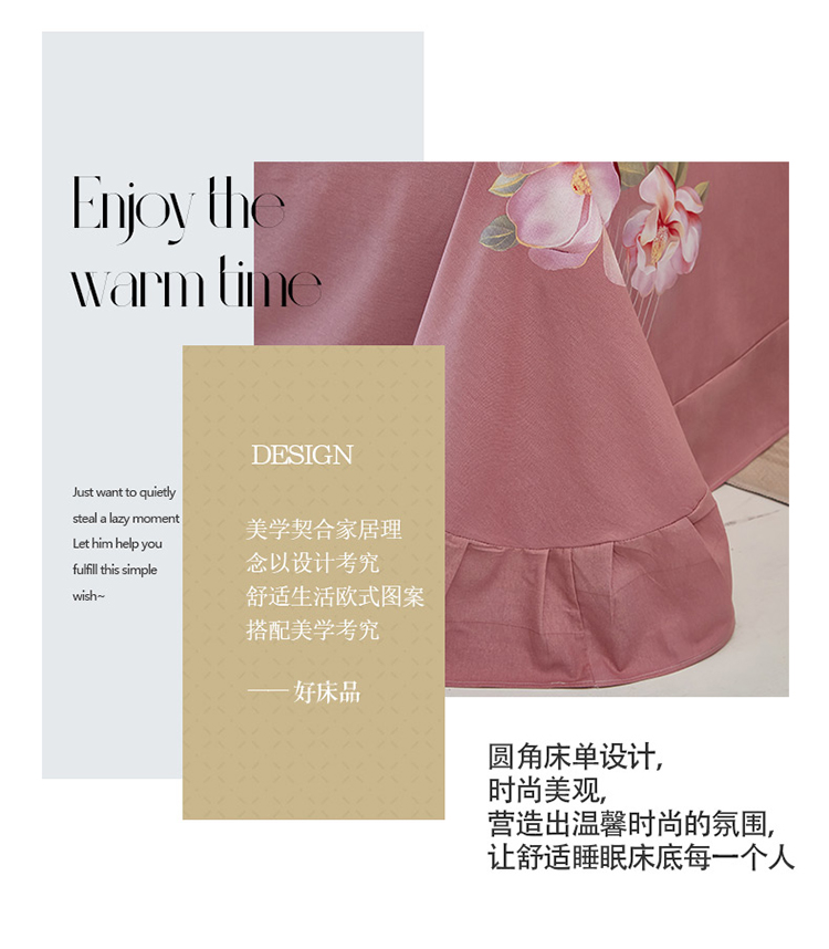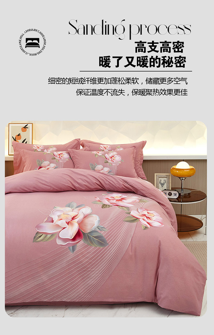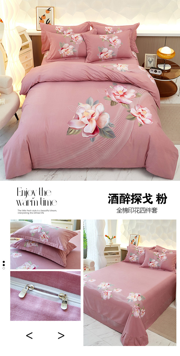 雲归梦 2023年新款加厚全棉生态磨毛大版四件套 酒醉探戈粉