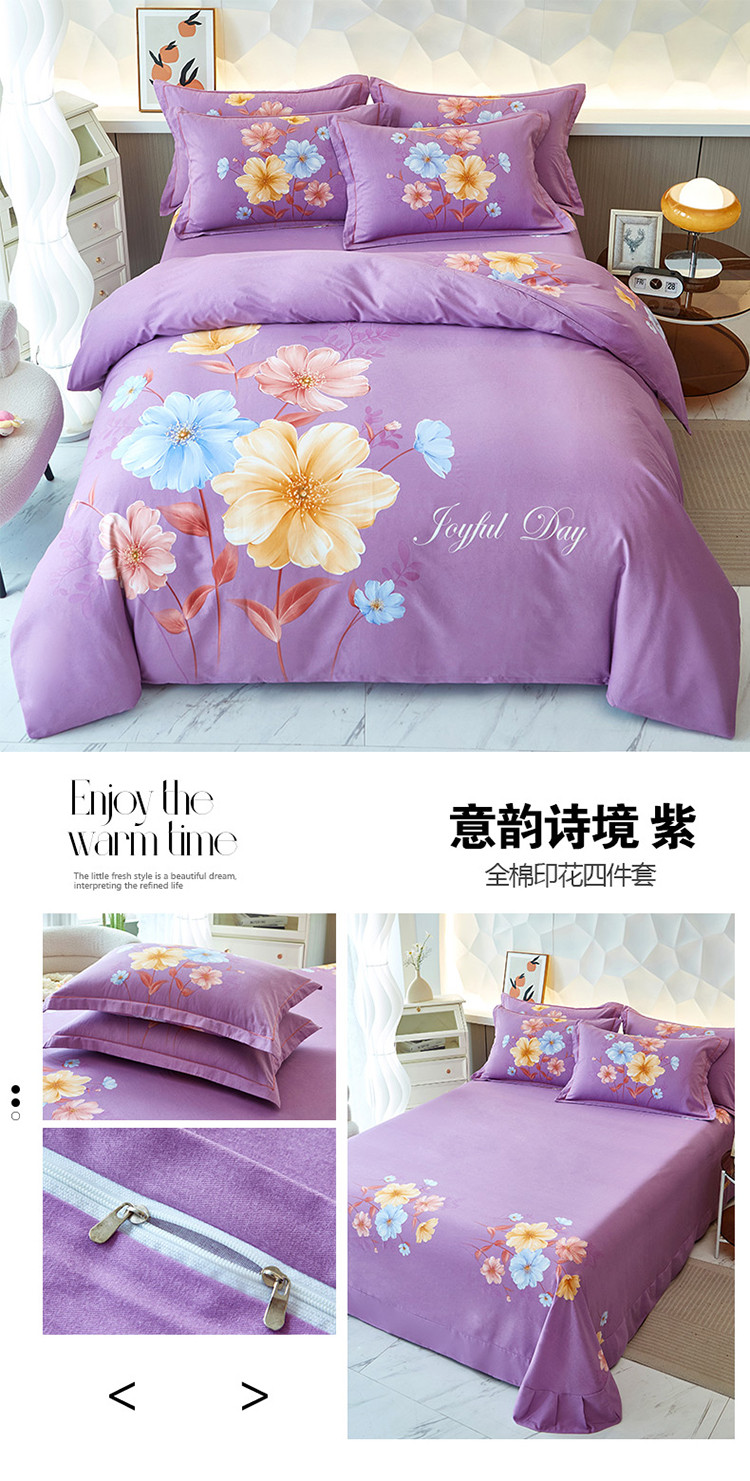 商品名称:雲归梦 2023年新款加厚全棉生态磨毛大版四件套 意韵诗境紫