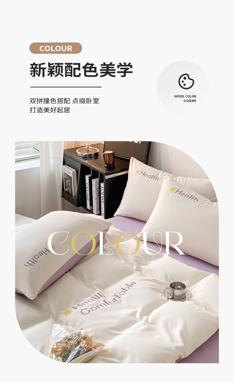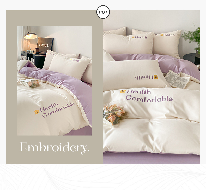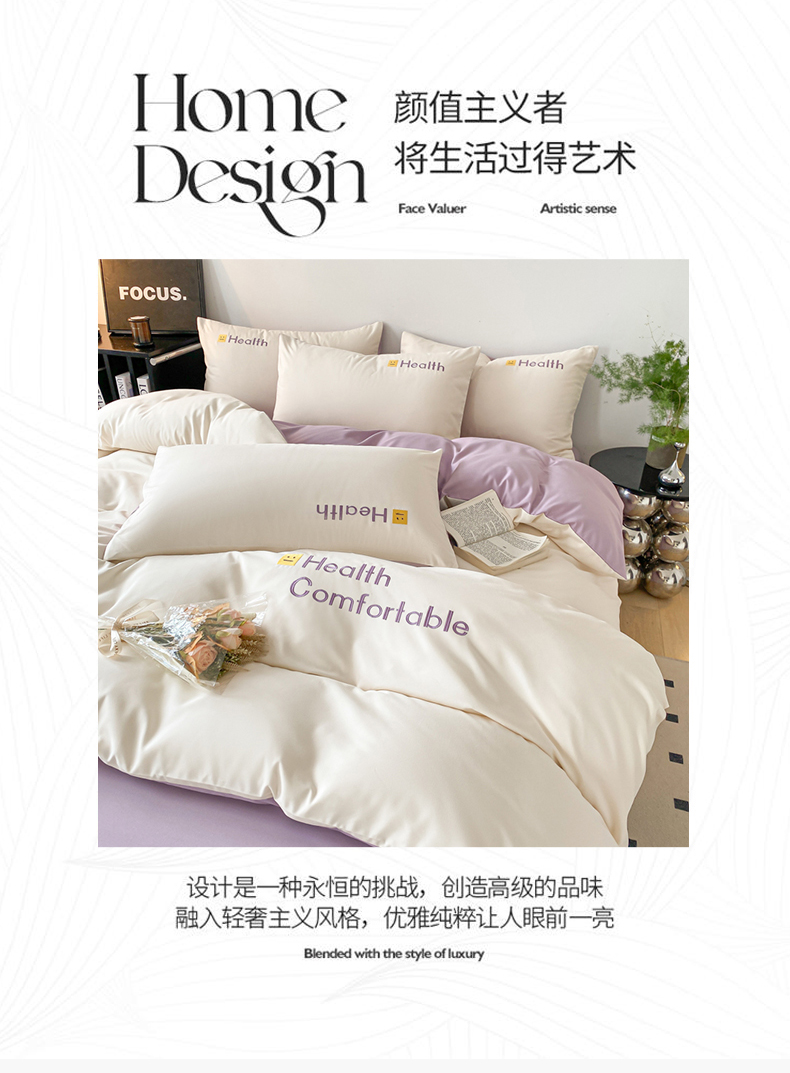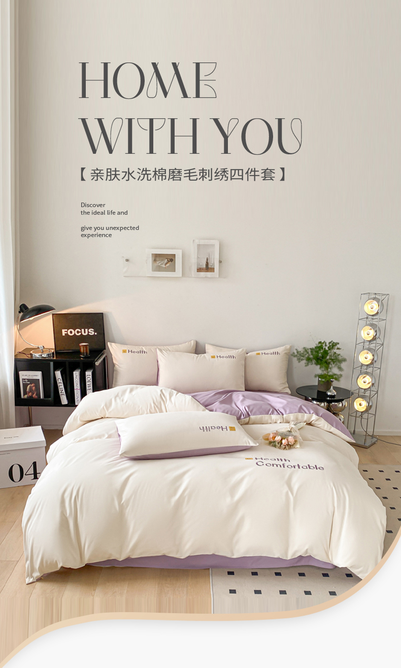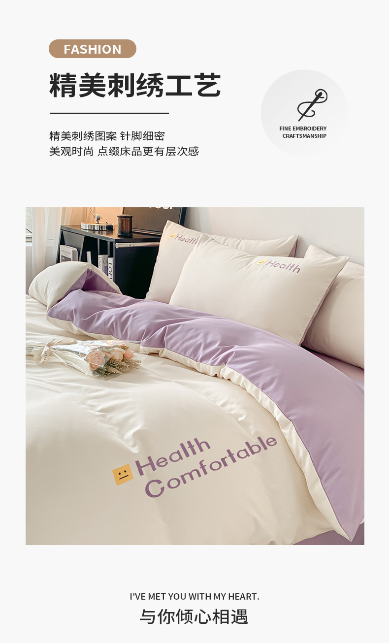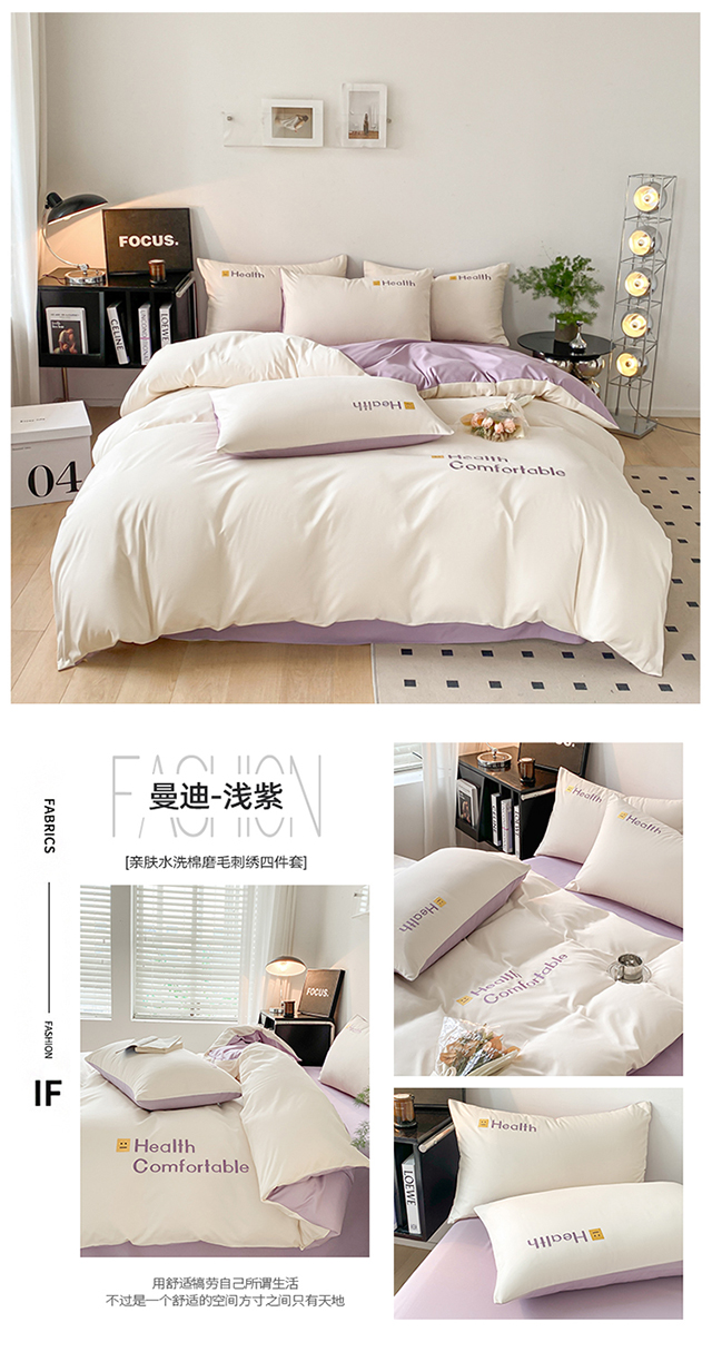 欣晴家纺 2023新款加厚磨毛水洗棉刺绣三件套四件套-曼迪系列 曼迪-浅紫