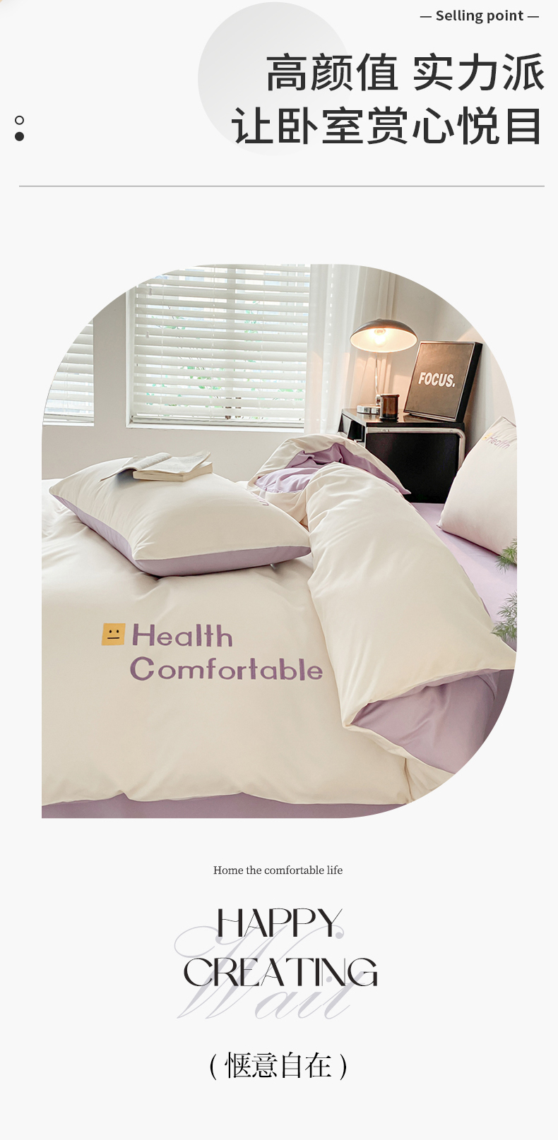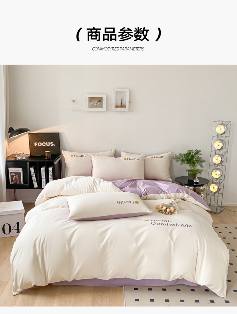 商品名称:欣晴家纺 2023新款加厚磨毛水洗棉刺绣三件套四件套-曼迪系列 曼迪-浅紫